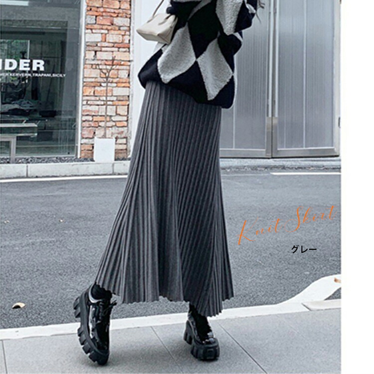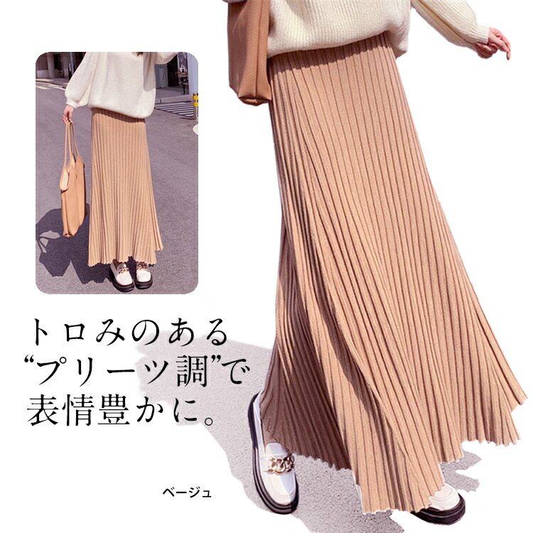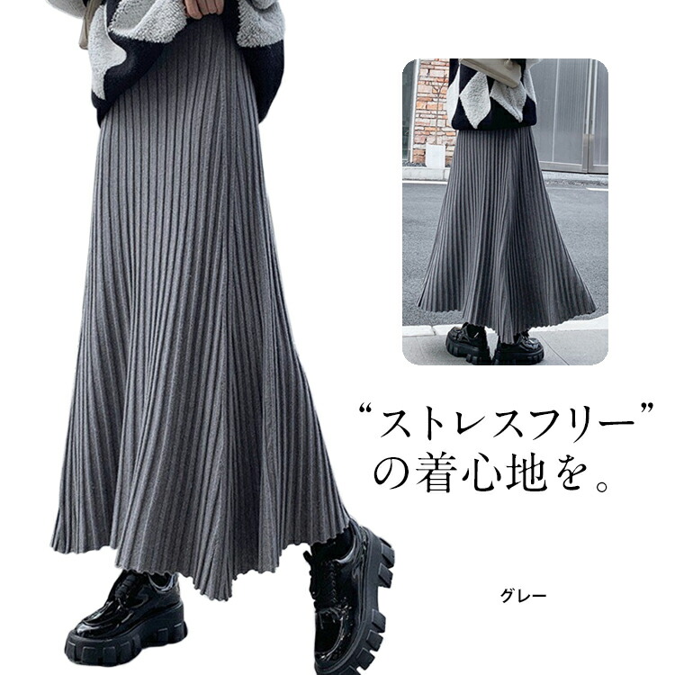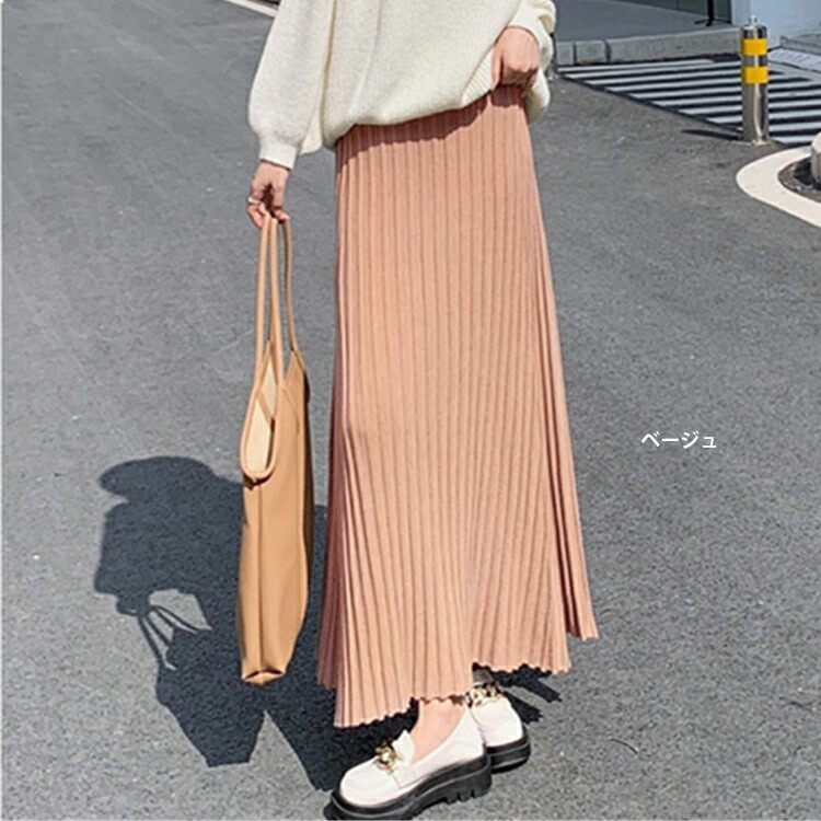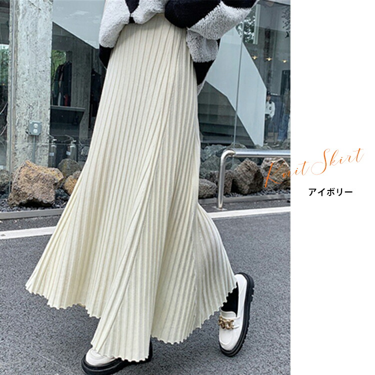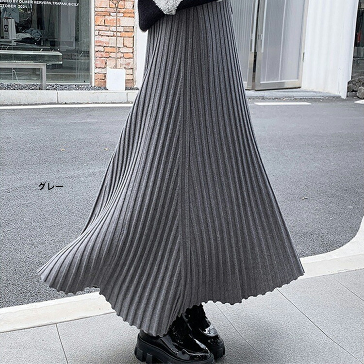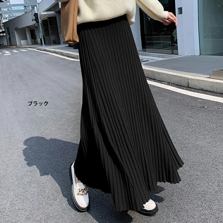 レディース 秋冬 ニットスカート プリーツ スカート レディース 秋 冬 春 ニットスカート プリーツ スカート ロング マキシスカート ウエストゴム Aライン