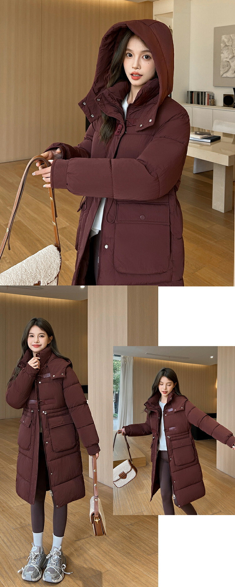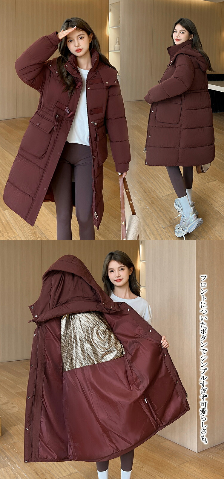 レディース 秋冬 ロング ダッフルコート レディースアウター 中綿 上着 ロングダウン シンプル 秋カラー カジュアルコーデ ドローコード レディースアウター ジャンパー 上品 ロング丈