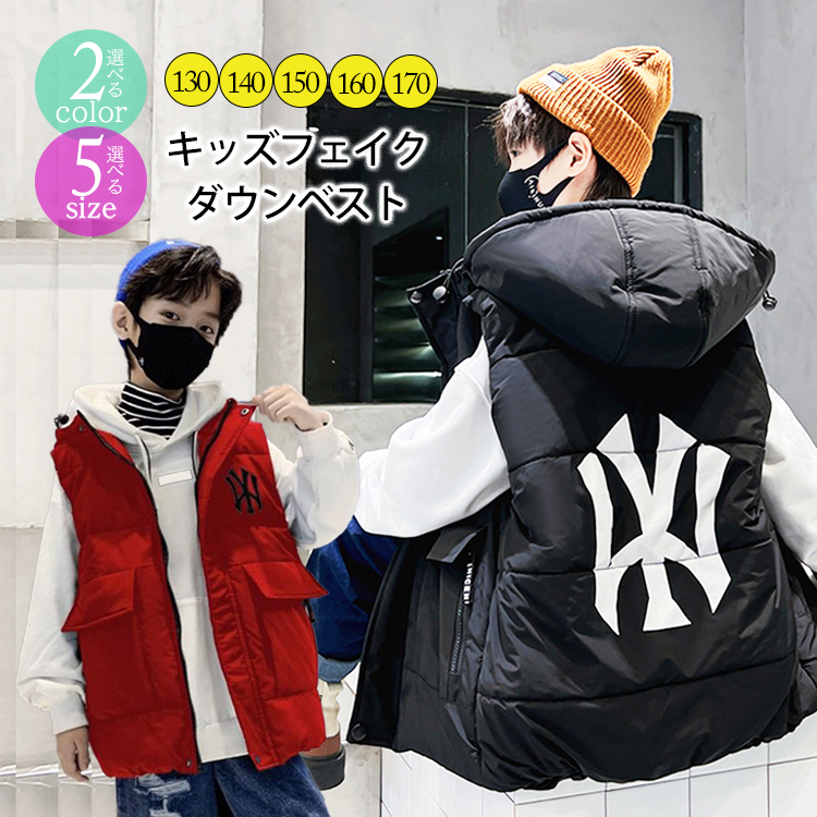 ■中綿入りで暖かい キッズフェイクダウンベスト■