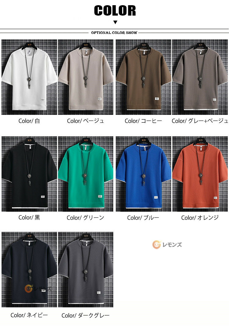 ※お客様のご覧になられますパソコン機器及びモニタなどの違い、また室内、室外での撮影により実際の商品素材の色と相違する場合もありますのでご了承下さい。商品情報商品名 Tシャツ メンズ 半袖Tシャツ素材 ポリエステル 綿カラー 白 ベージュ オレンジ コーヒー グリーン ブルー ネイビー グレー+ベージュ ダークグレー 黒サイズ 各サイズの寸法については画像のサイズ表にご参照ください。生産国 中国包装について 環境保護の観点から、「簡易包装」を推進しております明細書について 当店ではエコロジーと個人情報流出防止のため、ご指示の無い限り明細書を発行しておりません。