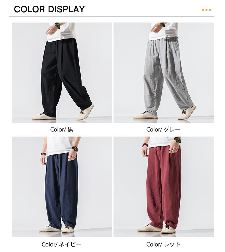 綿100% ワイドパンツ メンズ パンツ メンズ 長ズボン 春 夏 秋 冬 夏物 カジュアルパンツ シンプ 無地 ロングパンツ サルエル ゆったり