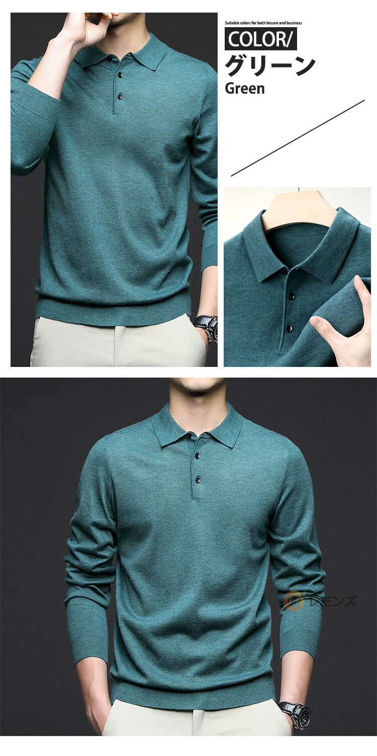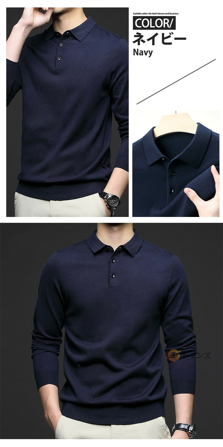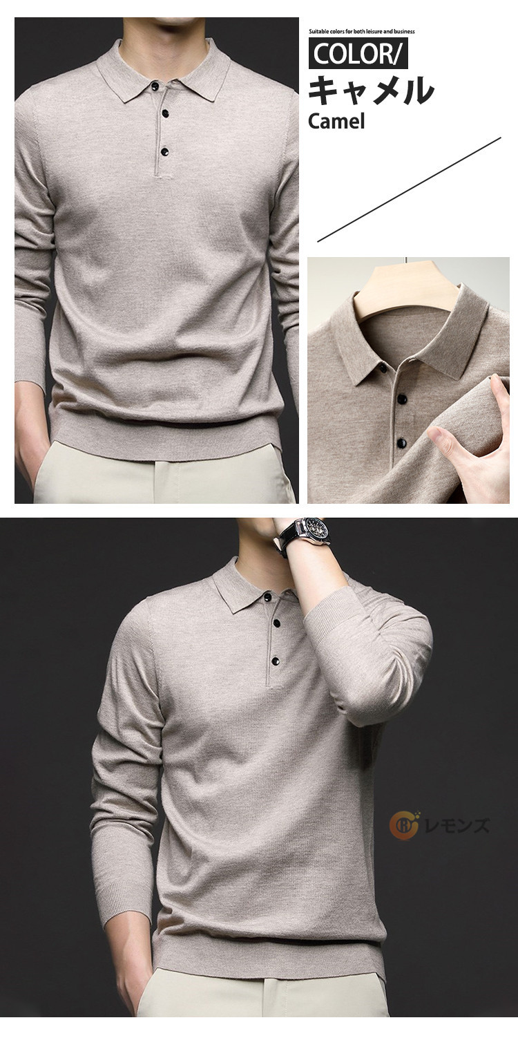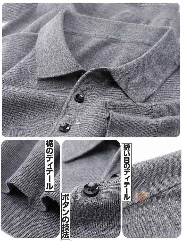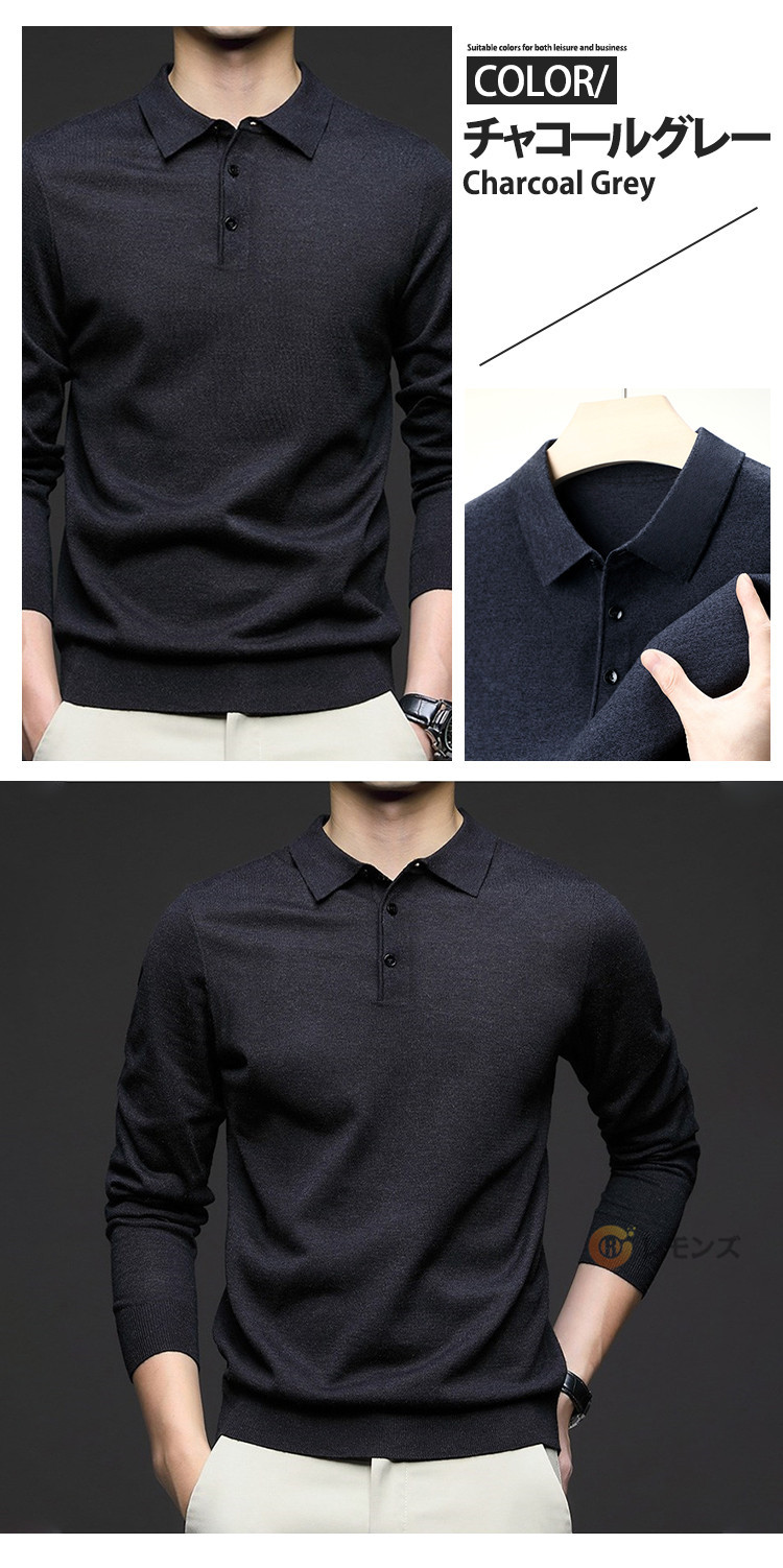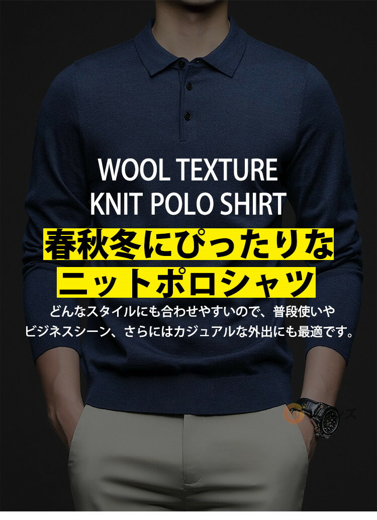 商品名 ニットポロシャツ メンズ ウール ニット 折り襟 長袖 ニットセーター 無地 ニット ポロシャツ 長袖 ニット トップス ゴルフ ゴルフウェア おしゃれ スポーツ 春秋冬 防寒 保温 紳士服 カジュアル 通勤 オフィス ニットポロ