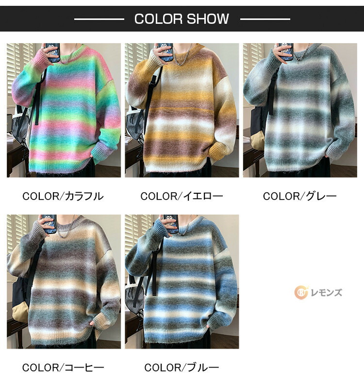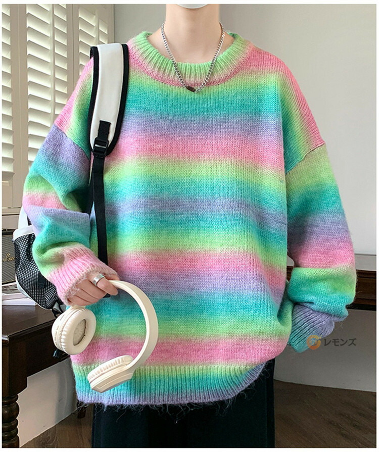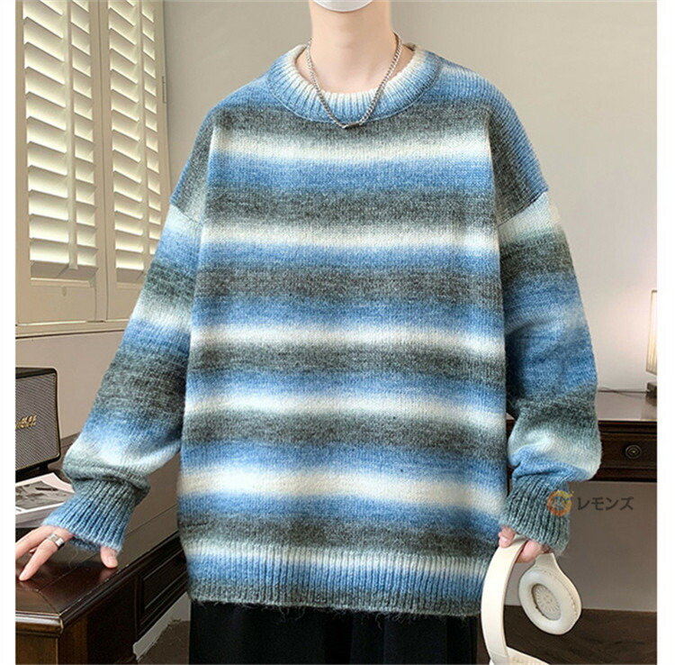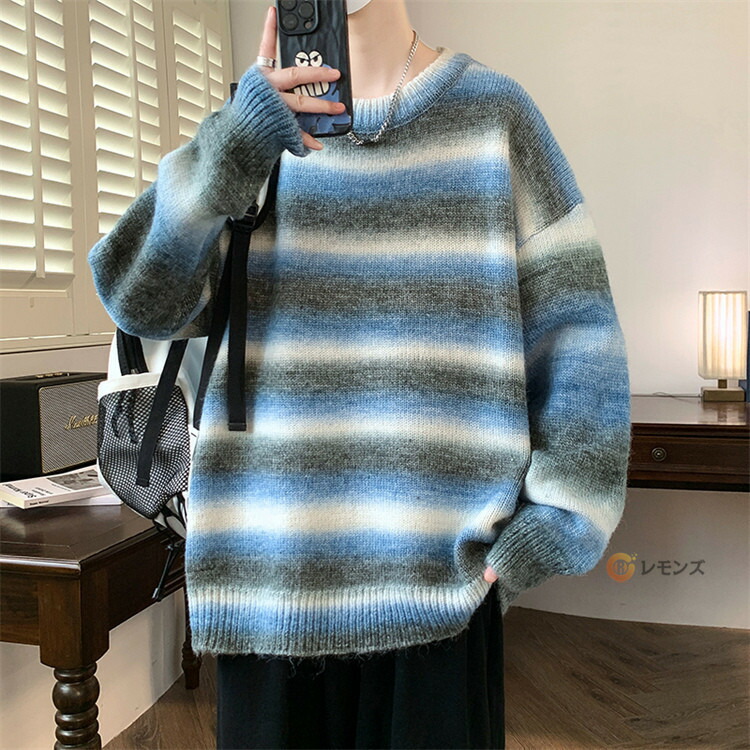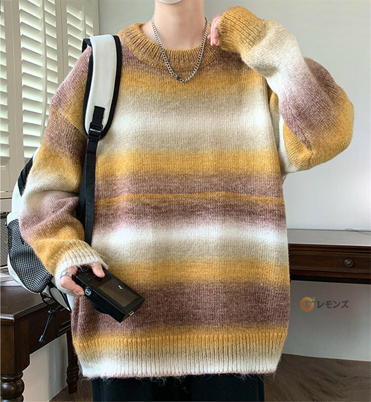 商品名 セーター ニット メンズ グラデーション レディース 長袖 セーター ニットソー ウール ニット 丸首 ニットセーター クルーネック トップス 保温 秋 冬 秋服 冬服 メンズファッション おしゃれ プルオーバー カジュアル 男女兼用