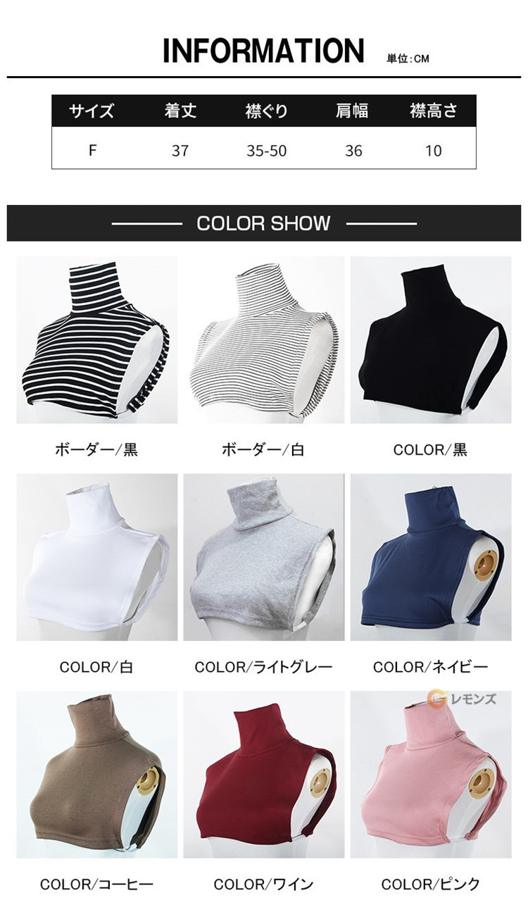 商品名 付け襟 つけ襟 レディース 女性用 婦人 重ね着風 タートルネック ハイネック フェイクレイヤード ボーダー あったか 単色 無地 フェイクカラー タートル カジュアル レイヤード シンプル おしゃれ かわいい インナー 白 黒 ファッション小物 秋 冬