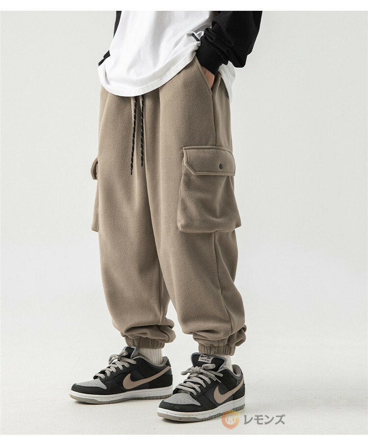 商品名 ボアパンツ メンズ カーゴパンツ 裏起毛 ワークパンツ スウェットパンツ 厚手パンツ リブ ロングパンツ カーゴ ボトムス 無地 裏フリース あったか 長ズボン 秋冬 カッコイイ ルームウェア 防寒パンツ