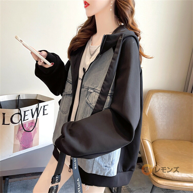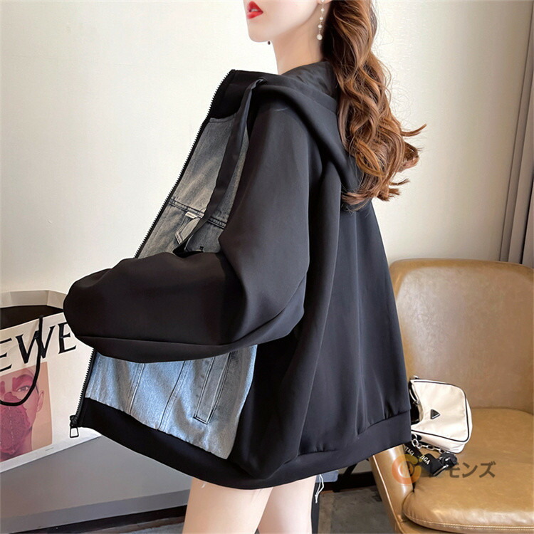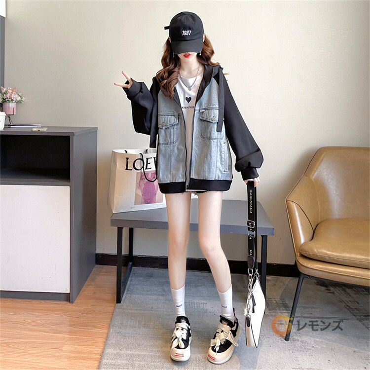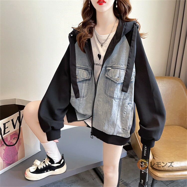 商品名 デニム パーカー レディース ドッキング デニムパーカー フードパーカー シップアップ フード 羽織 ライトアウター 大きいサイズ スエット スウェット トレーナー デニムGジャン 秋 冬 防寒