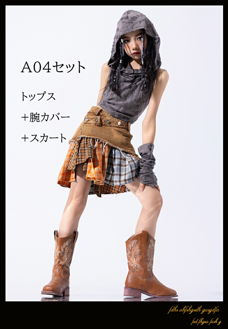 vertical-key: A01セット A02セット A03セット A04セット 砂色トップス+腕カバー コーヒーグレートップス+腕カバー スカート ロングパンツ デニムパンツ 短パン