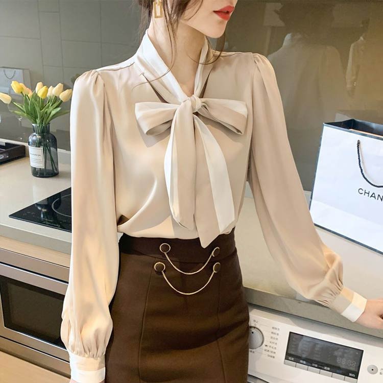 シアースリーブ ドッキングシャツ ボウタイシャツブラウス