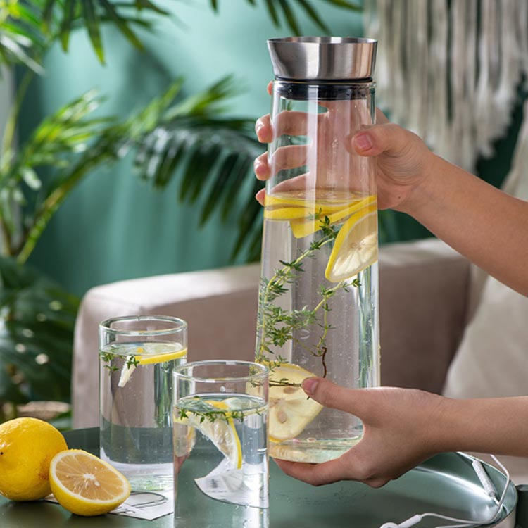 ガラス ピッチャー 水差し 冷水筒 耐熱ガラス ウォーターピッチャー ポット アイスティー ジュース ガラスお茶ポット お茶ボトルスリムポット