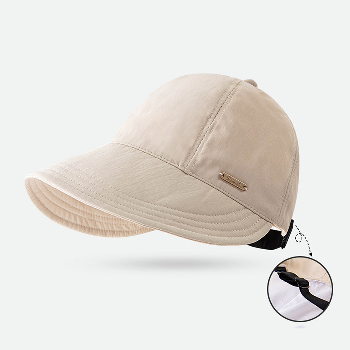 風を防ぐ紐は付いています。帽子のサイズを調整し、快適な着用感を維持しながら、 風で飛ばされるのを防ぐことができます。