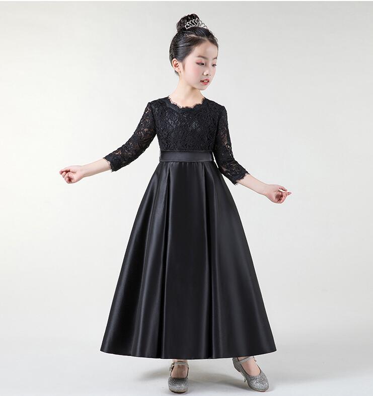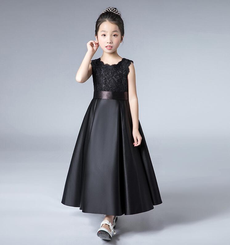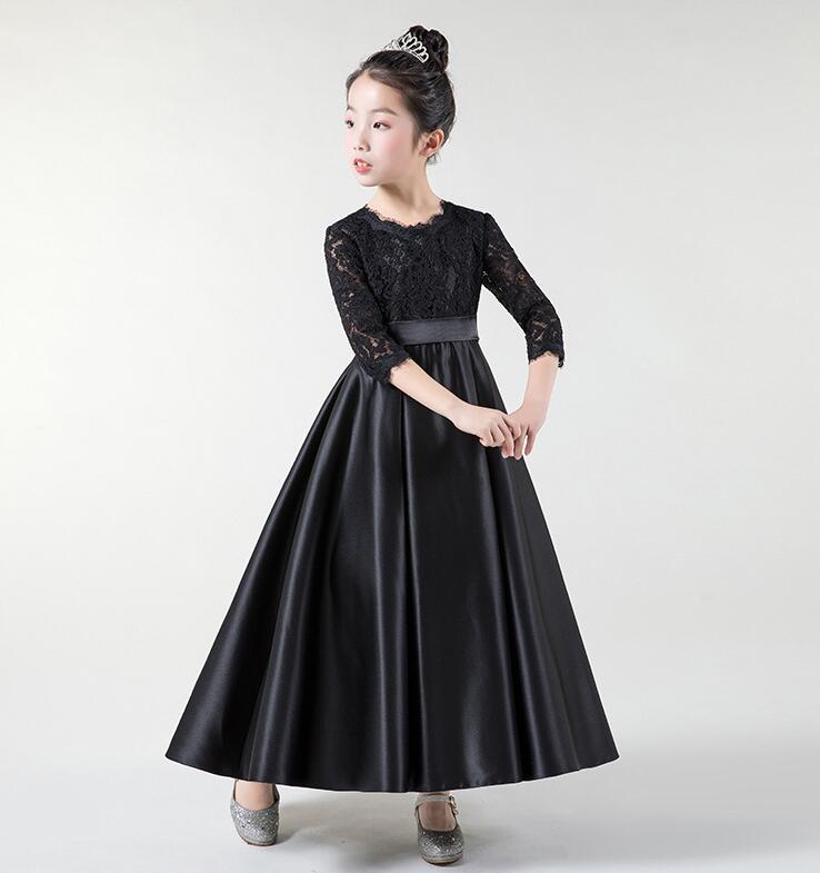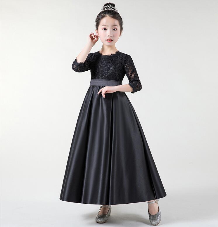 子供ドレス キッズ フォーマル ジュニア 子供服 女の子 ピアノ プリンセス パーティードレス マキシ丈ワンピース 袖なし 7分袖ワンピース 高品質 ブラック 黒80~160