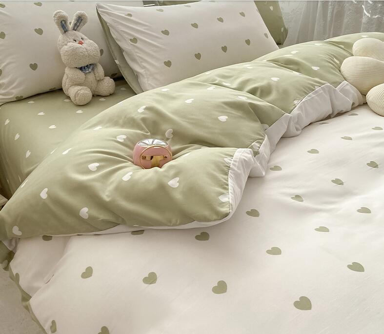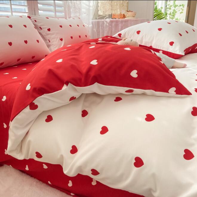 ハート柄 大人気 4色 新生活 韓国風 3点セット 寝具カバーセット 掛け布団 ベッド用品 1.2m フラットシーツ ボックスシーツ シングル セミダブル ダブル 4点セット1.5m 1.8m