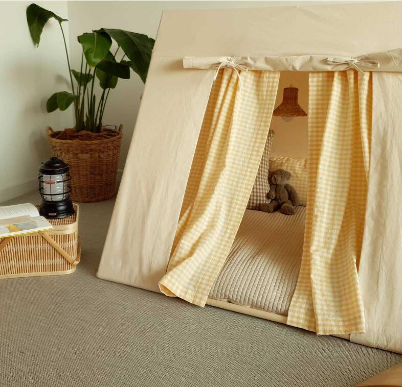 新発売 2点セット キッズテント 子供部屋 子供テント キッズ プレイテント 組み立て簡単 室内室外 持ちやすい 窓口付き 小屋+厚手フロアマット こどもの日 天然木ブラケット 洗濯可