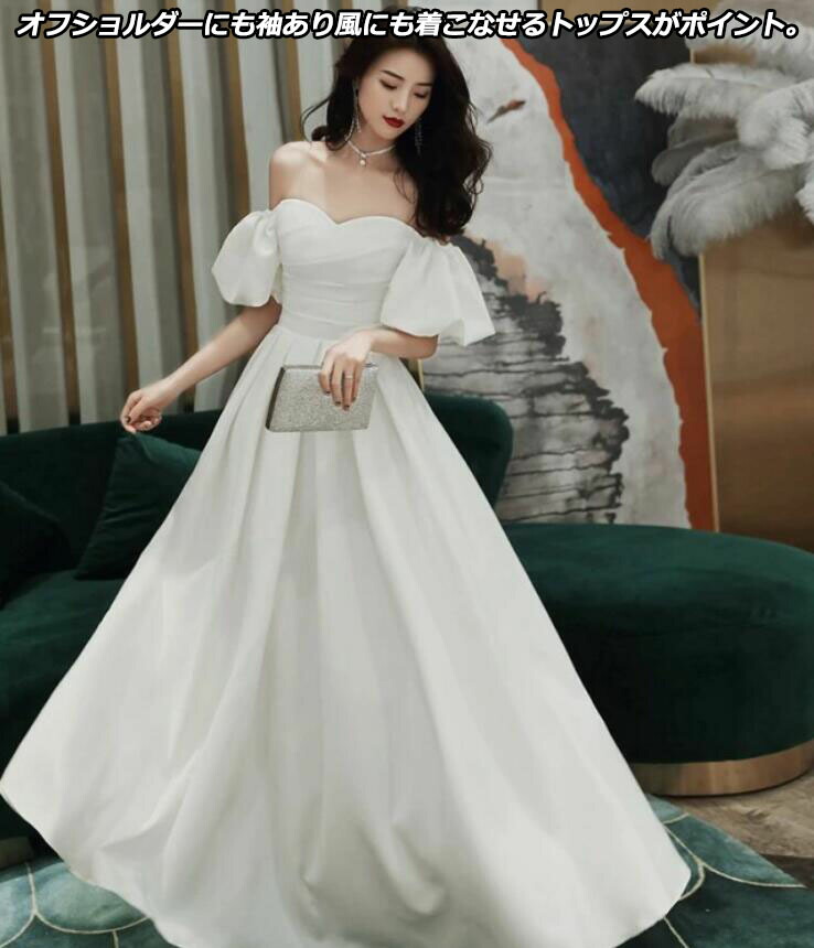 3色 ウエディングドレス カラードレス ウエディング 白 黒 赤 半袖 オフショルダー ロング マキシ丈 大きいサイズ 小さいサイズ スレンダー 編み上げ ミモレ丈 ミドル丈 ミディアム丈
