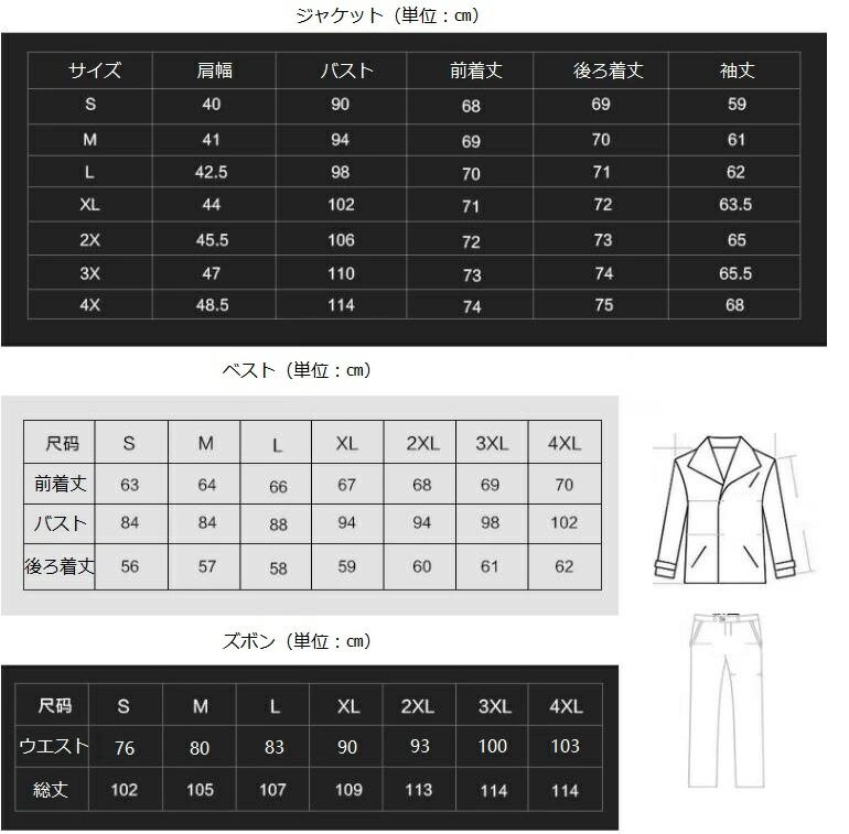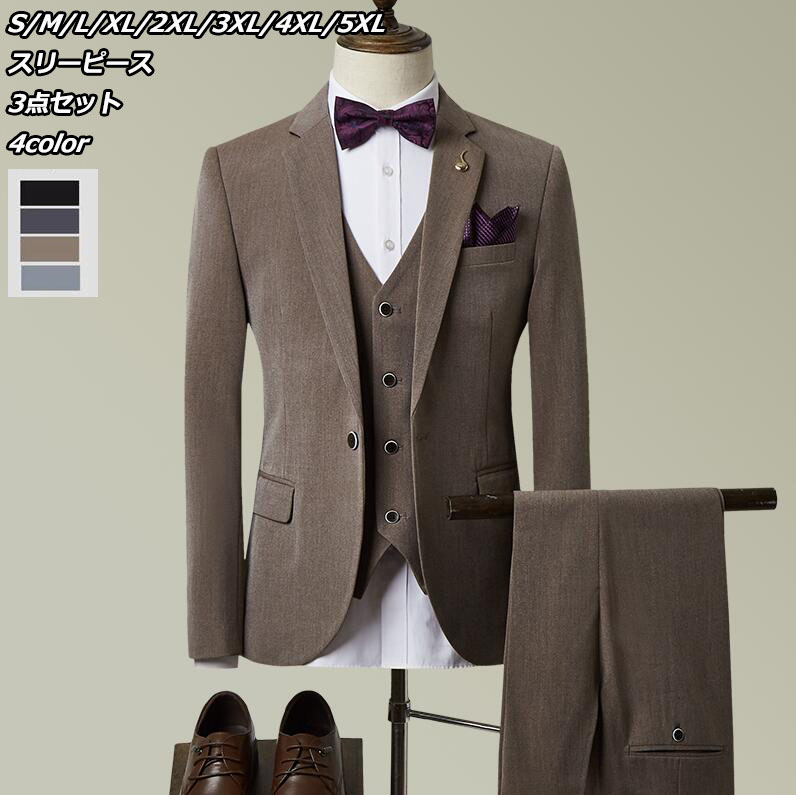 高品質 4color メンズスーツ ジャケット+ベスト+パンツ セレモニースーツ スリムスーツ スリーピース セレモニースーツ スリムスーツ カジュアルスーツ 細身スーツ 大きいサイズ 5XLまで
