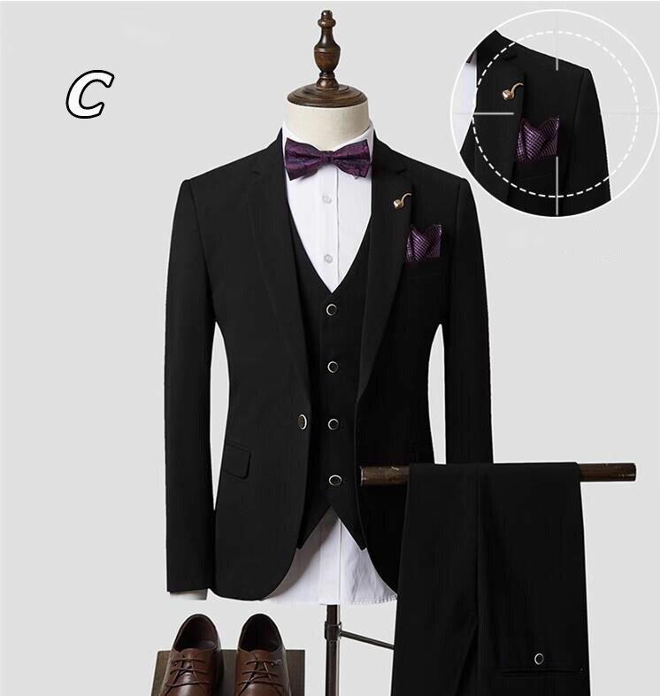 メンズビジネススーツ、スリーピース 上下セット、小さいサイズから大きいサイズまで、スリムフィットで快適に着用いただけます