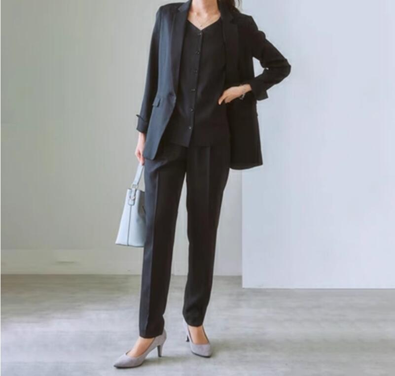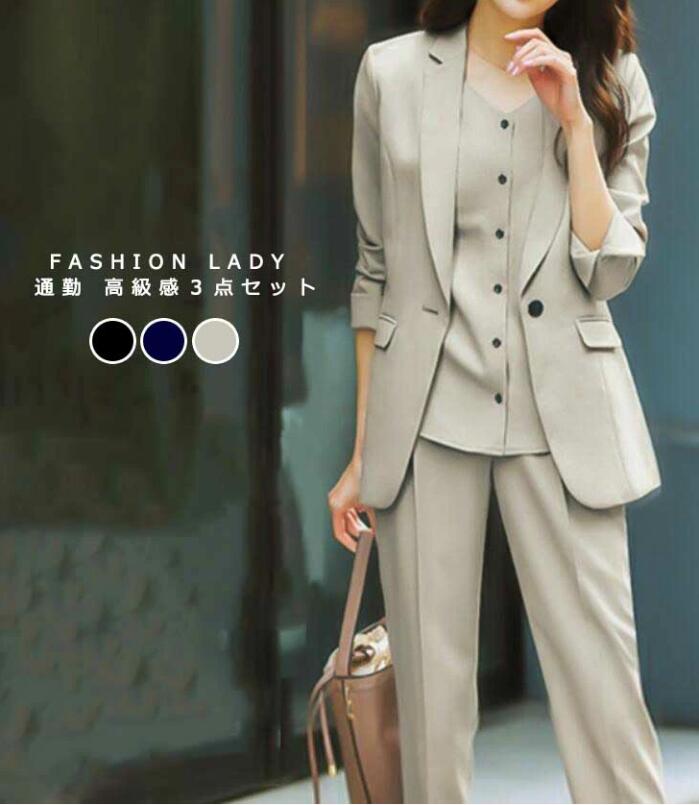 レディーススーツ 司会 美容師 セレモニースーツ パンツスーツ エレガント ファッションスーツ 制服 OL カジュアル 通勤スーツ ビジネス 一つボタンスーツネイビー黒ベージュ