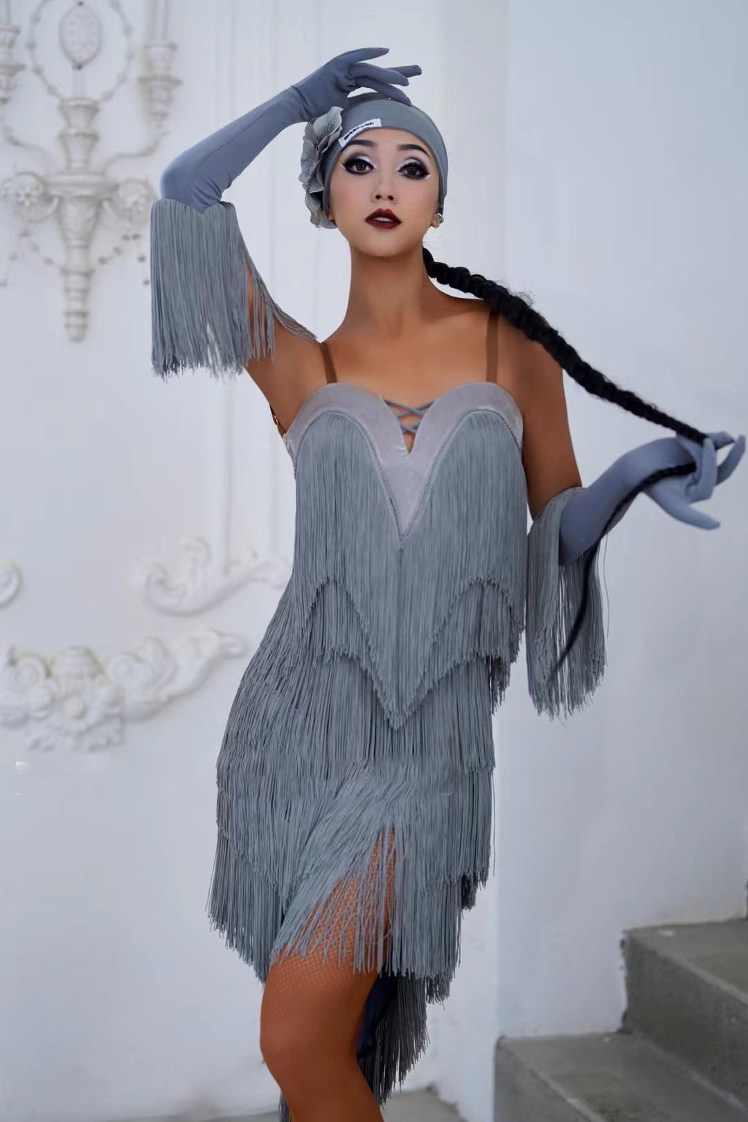 社交ダンス衣装として、またステージ衣装として、華やかさを演出できる魅力的な衣装です。