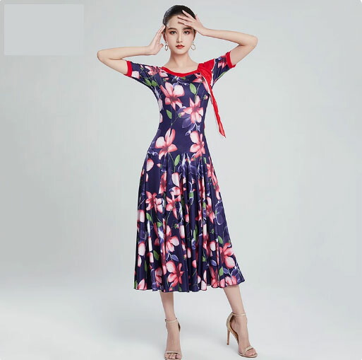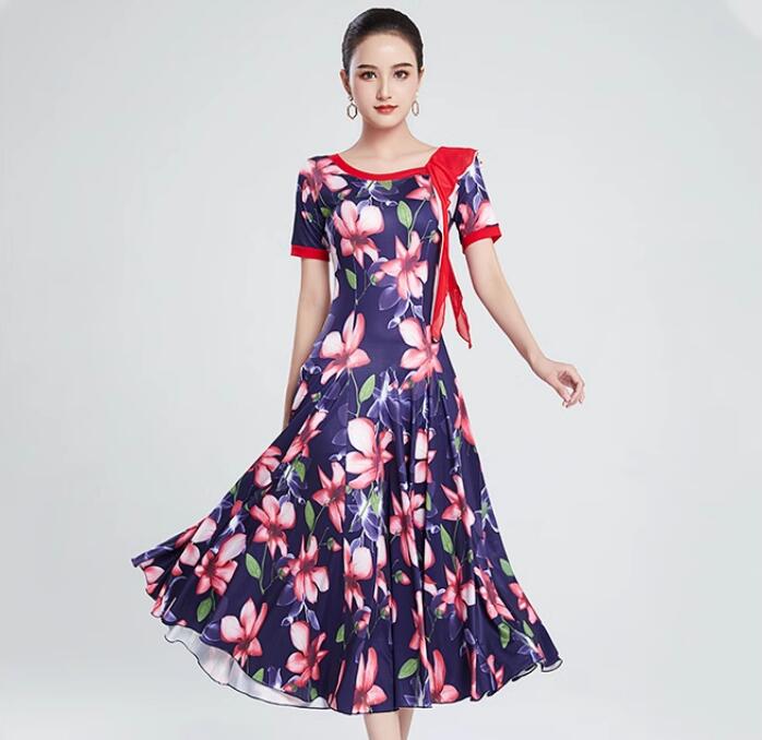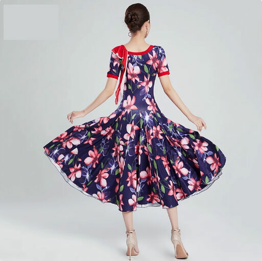 S M L LL 3L 社交ダンスドレス 花柄 社交ダンス衣装 着 社交ダンスワンピース 社交ダンス モダンドレス スタンダード ドレス 社交ダンス ラテンドレス タンゴ ドレス ボールルーム衣装