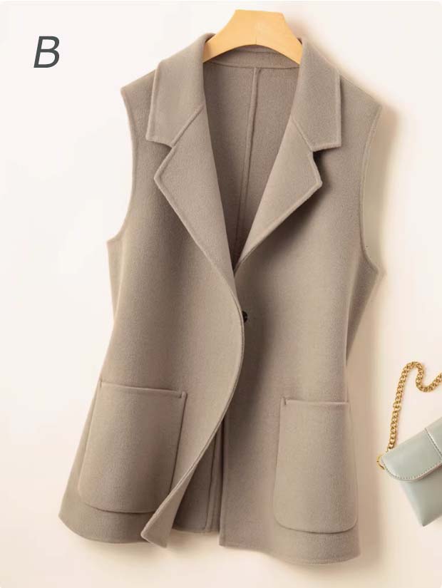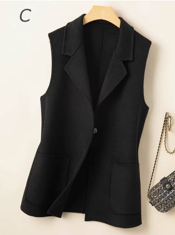 しっかりした厚みと温もりを感じる生地で、柔らかくて保温性に優れ、真冬の寒さにも耐えられる温かさを維持したベストです。