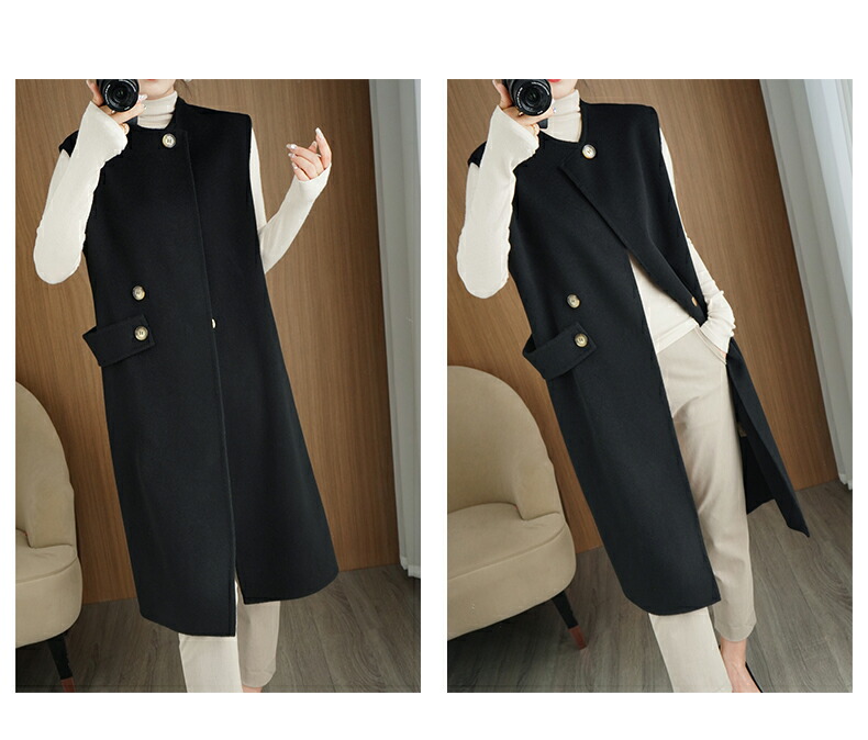 3色 ベスト ジレ レディース 前開き ベスト レディース ジレベスト ミモレ丈ベスト ノースリーブ大きいサイズ ブラック カジュアル シンプル スリット 卒業式