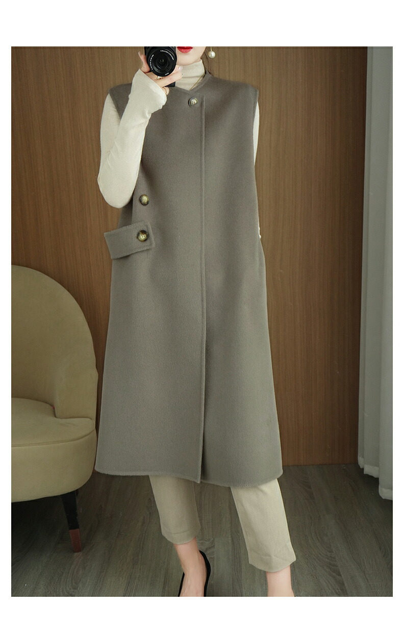 しっかりした厚みと温もりを感じる生地で、柔らかくて保温性に優れ、真冬の寒さにも耐えられる温かさを維持したベストです。