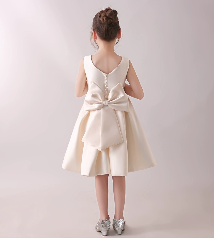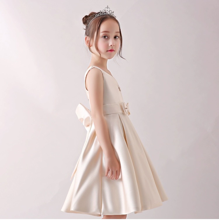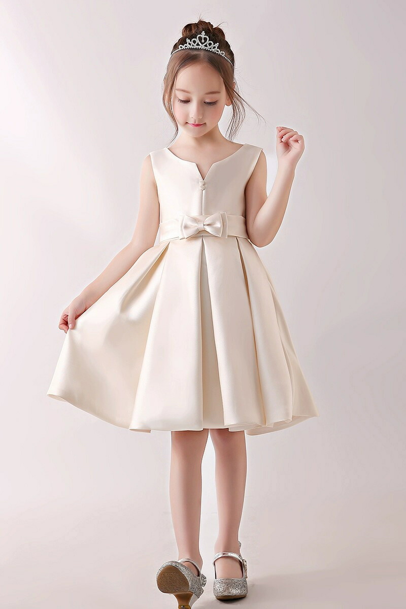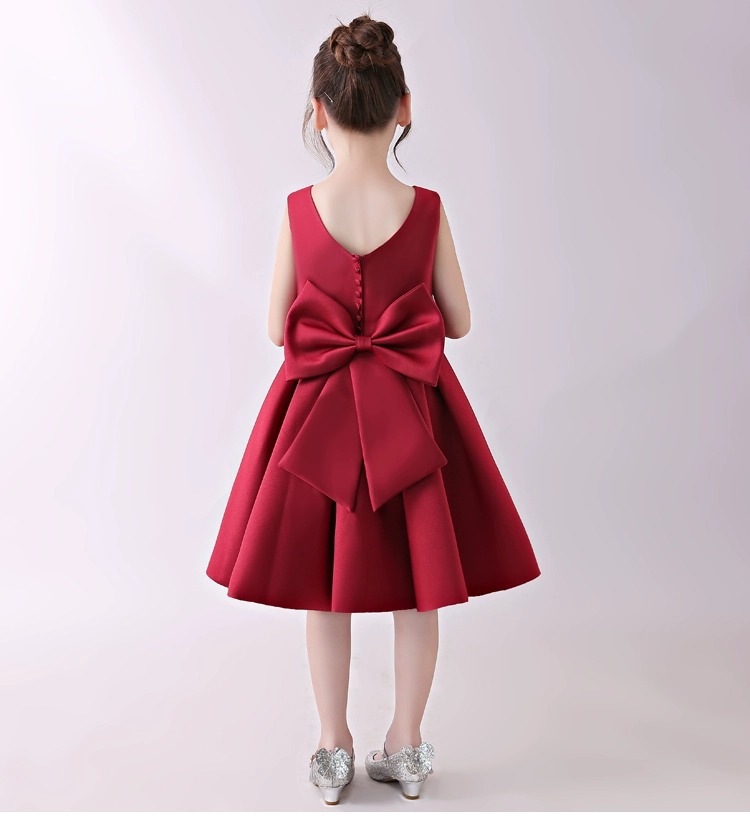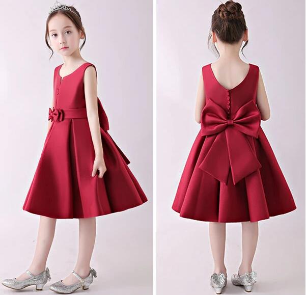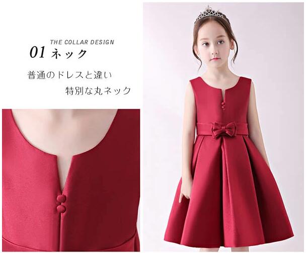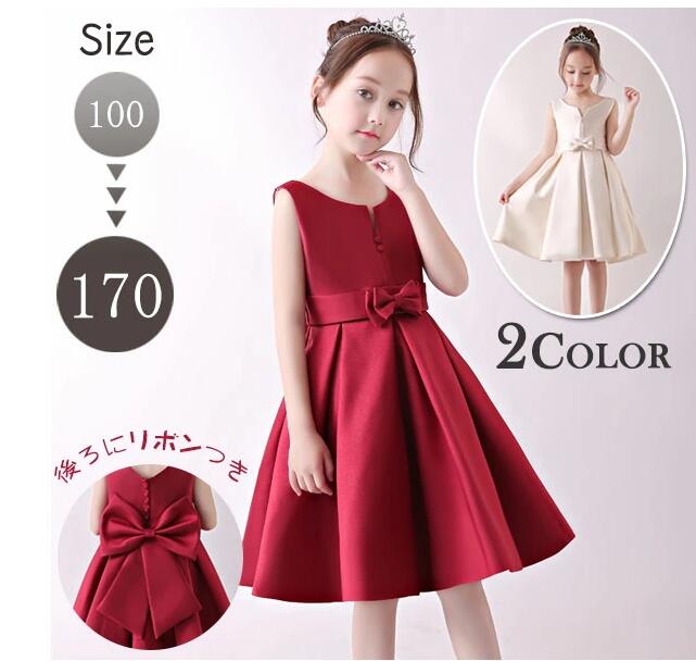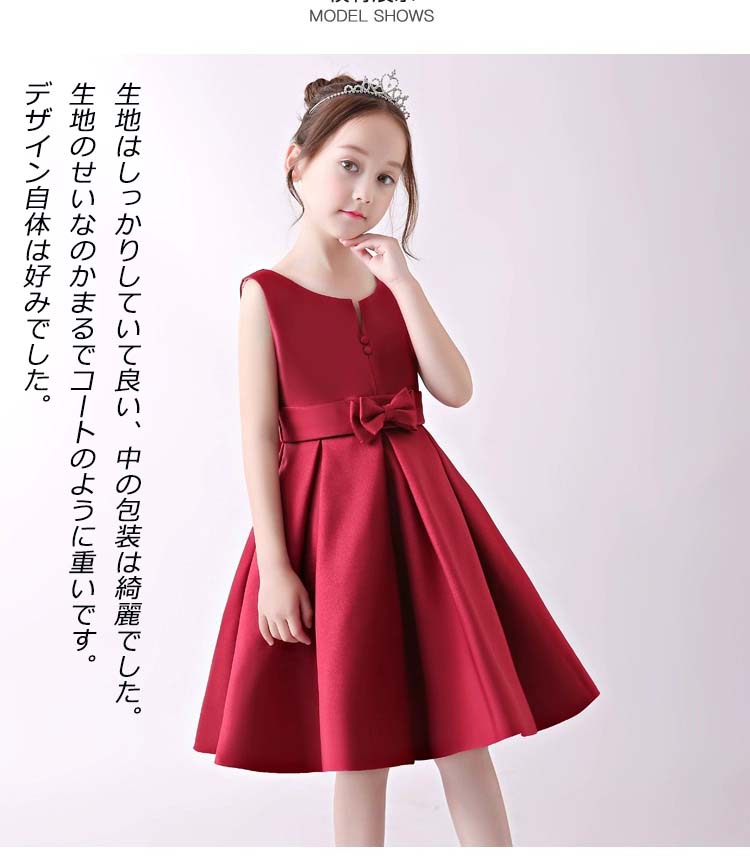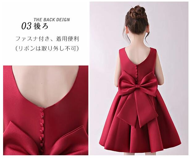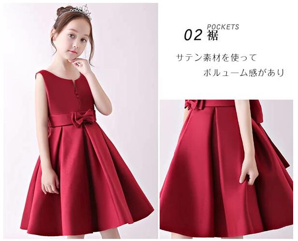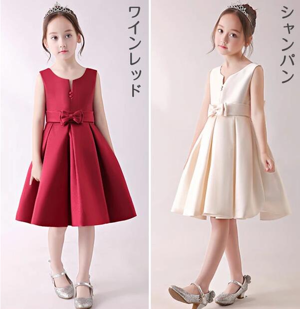 子供ドレス リボン飾り フラワーガール 花嫁付き添い プリーツドレス キッズドレス 女の子 ワンピース パーティー サテン バイオリン Aライン Vネック シャンパン ワインレッド