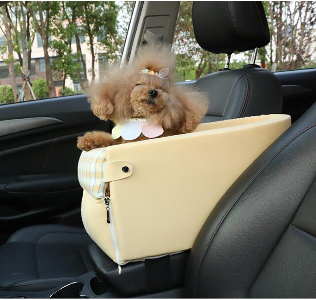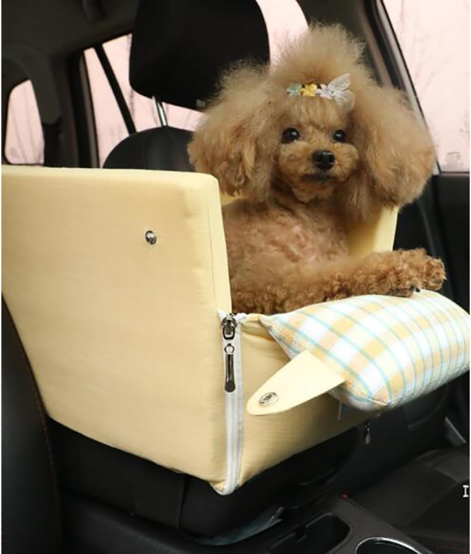 44*24*22 犬 車 シート ペットベッド 犬 ドライブボックス ドライブベッド 犬 猫用 キャリーバッグ 座席シート お出かけ 車用ペットシート ペットソファ 滑り止め 飛び出し防止リード&フック 洗える イエロー 犬用ドライブベッド