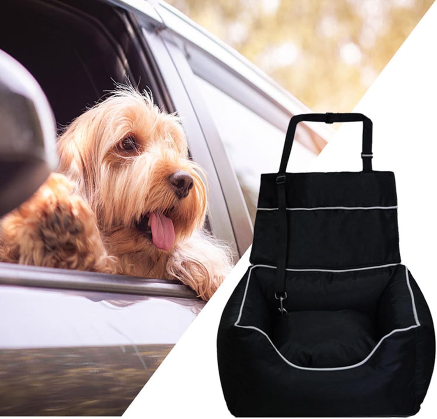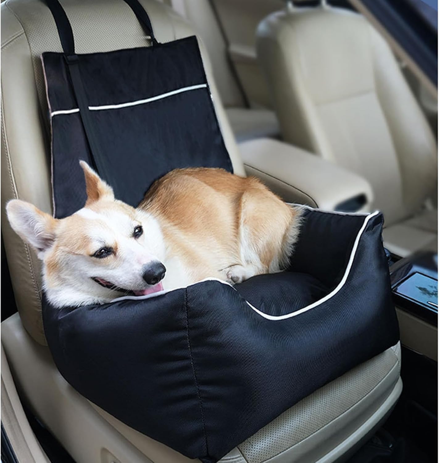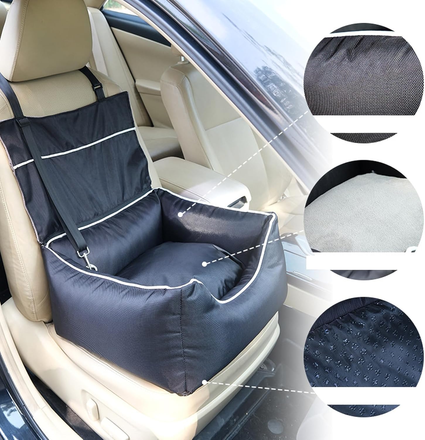 □また、シート中に飛び出し防止のリードも付き、ドライブする時、犬や猫ちゃんが車酔いなどの心配がありません。