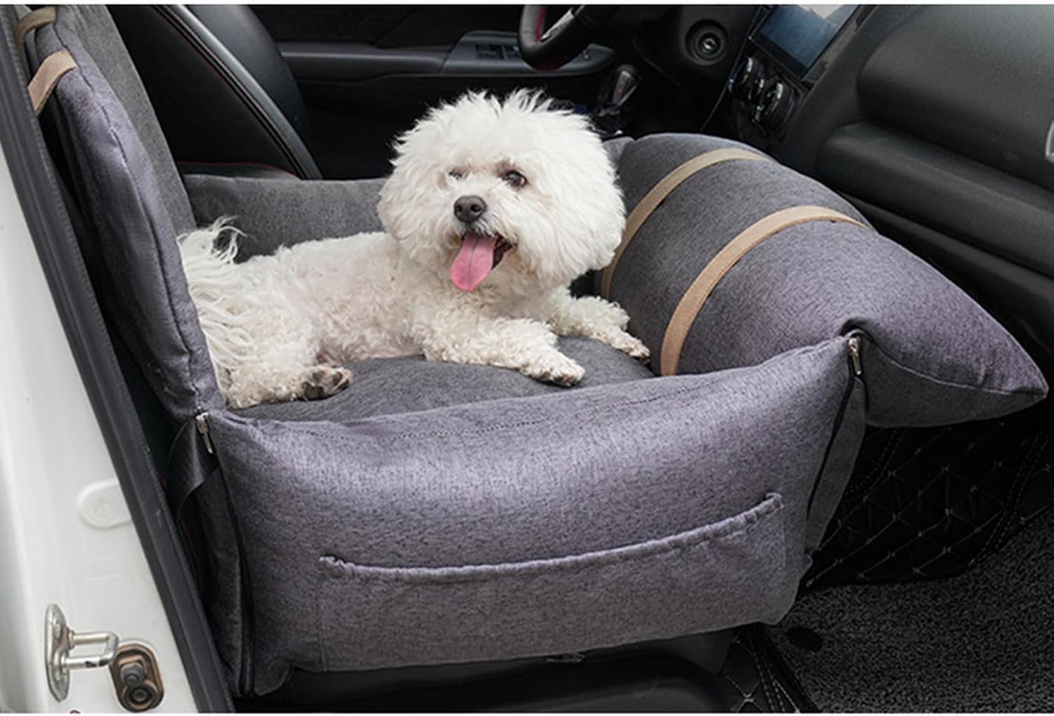 ドライブベッド 犬 車 ダークグレー ドライブシート 犬用 ドライブボックス 車用 後部座席 小型犬 65*55*45cm 中型犬 猫 お出かけ 3way キャリーバッグ ペット用ドライブボックス 飛び出し防止 滑り止め 固定ベルト 通院 地震 防災