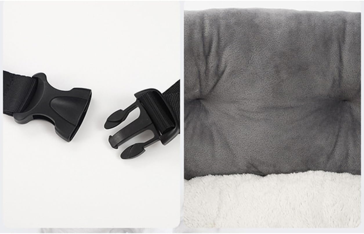 後部座席に固定できる付属のベルトが2本付いています(サイズ調整可能)。ワンちゃんの安全性を守るためにも必ずベルトを装着してからワンちゃんとのドライブを楽しみください。