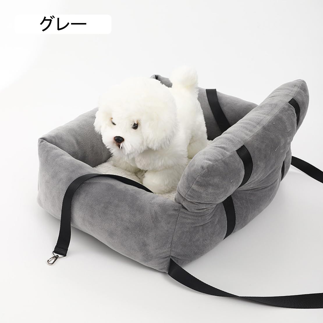 犬 車 ドライブボックス ドライブベッド 小型犬 中型犬 カー用品 飛び出し防止 車酔い防止 水洗い可能 グレー 44*35*27cm 2way 車載用 ペットベッド ペット用ドライブボックス 後部座