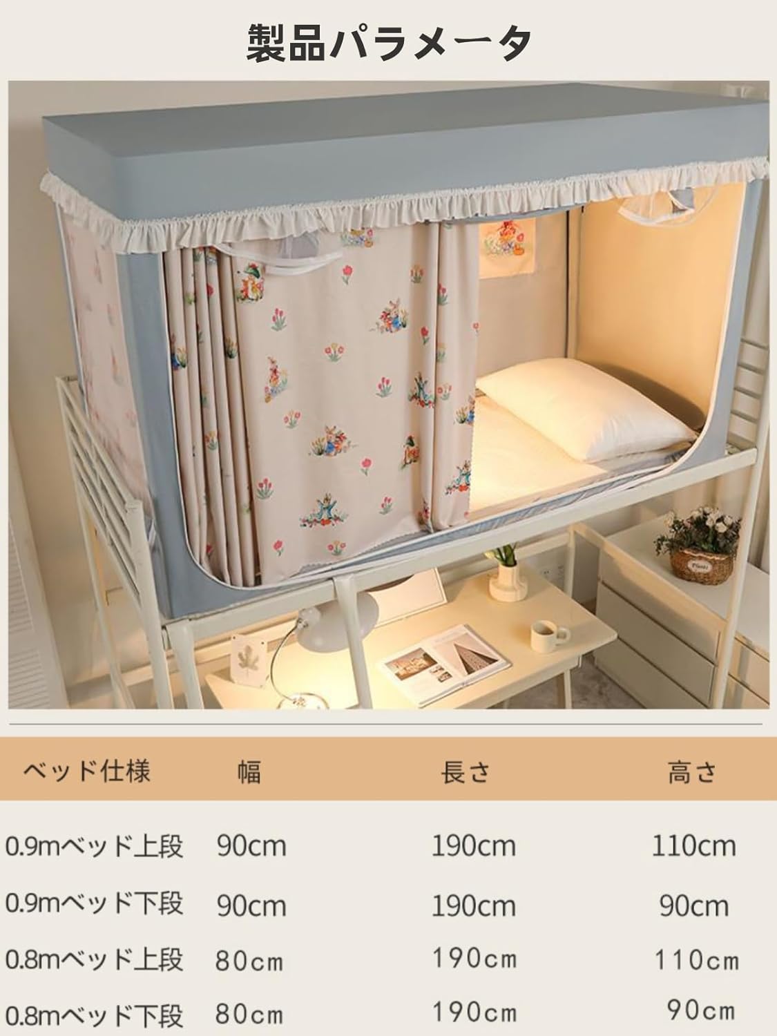 サイズ: 90*190*90cm(下段) 80*190*110cm(上段) 80*190*90cm(下段) 90*190*110cm(上段)