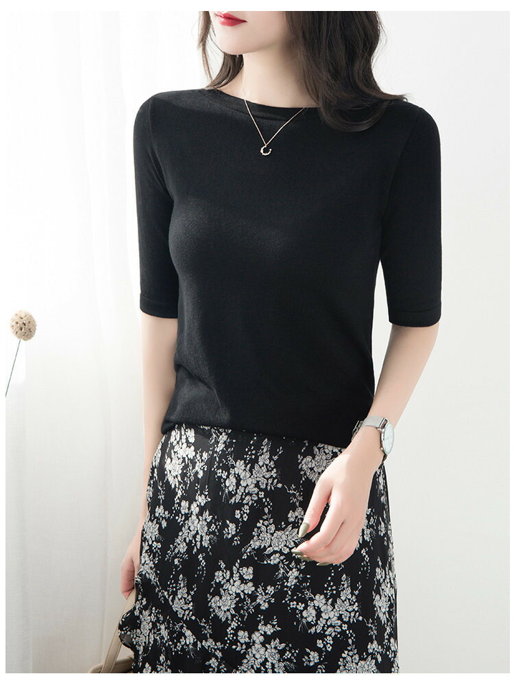 サマーニット 春 夏 五分袖 5分袖購入 註文後 結構早く届き 時期的に気温の変化があるので、少し暖かいなぁと 思う日は、5分袖を着たり 良い買い物をしたと思っています。