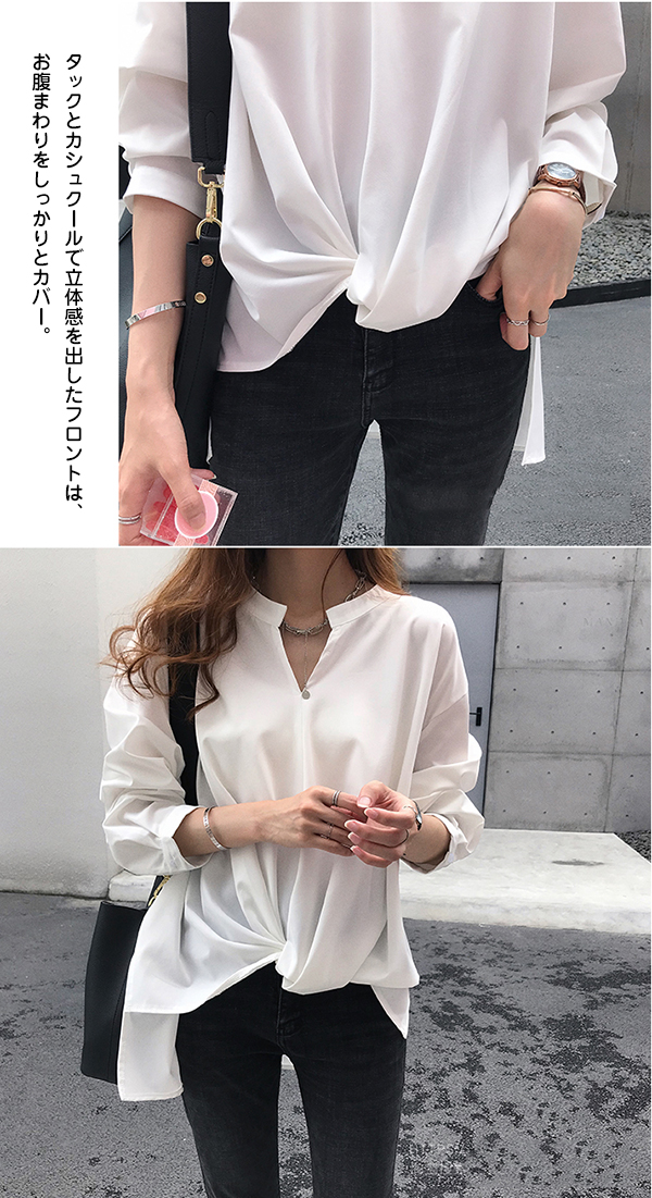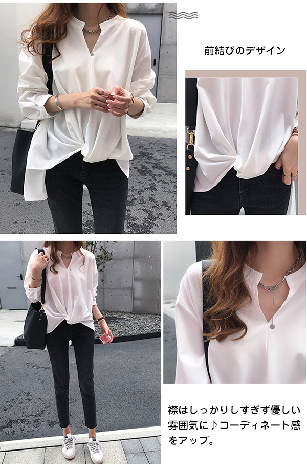 シアースリーブ ドッキングシャツ ボウタイシャツブラウス