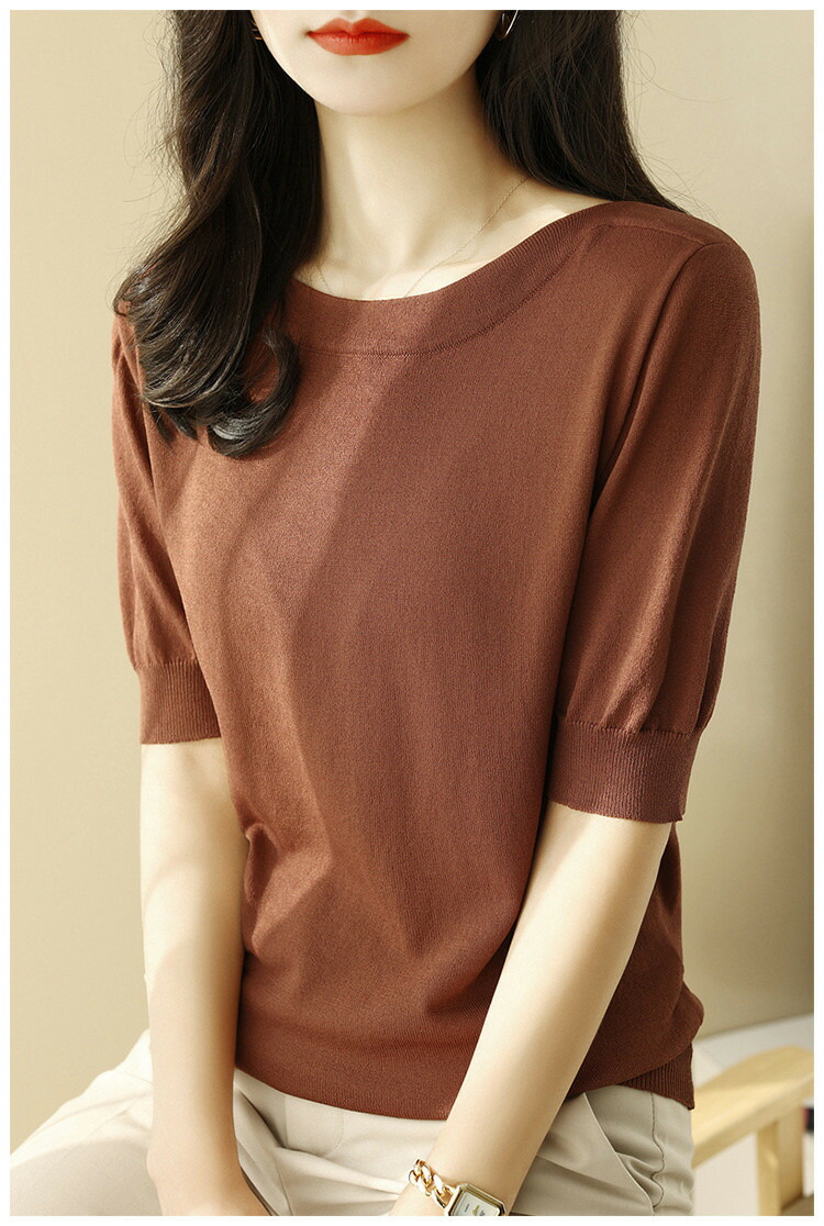 サマーニット レディース トップス 半袖 カットソー ボートネック 涼感ニット ニットソーレディースファッション トップス ニット セーター セーター