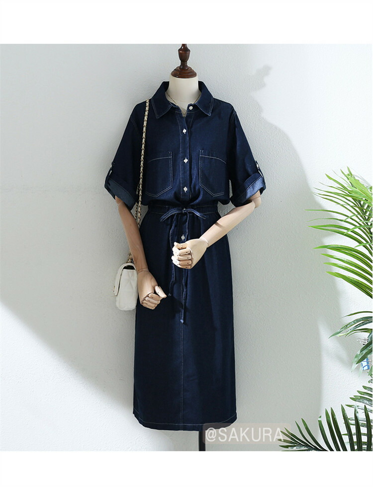ワンピース デニムワンピ レディース ワンピ ロングワンピース ロング 半袖レディースファッション ワンピース