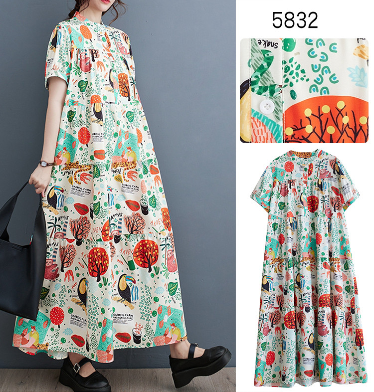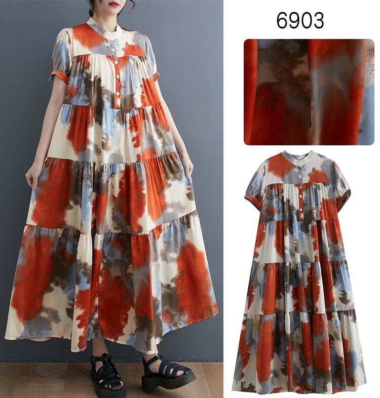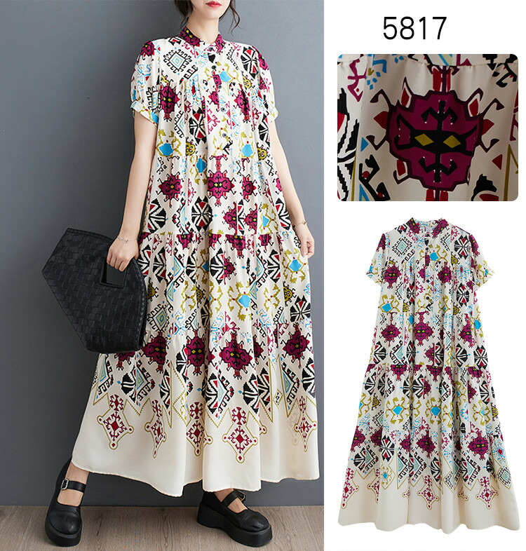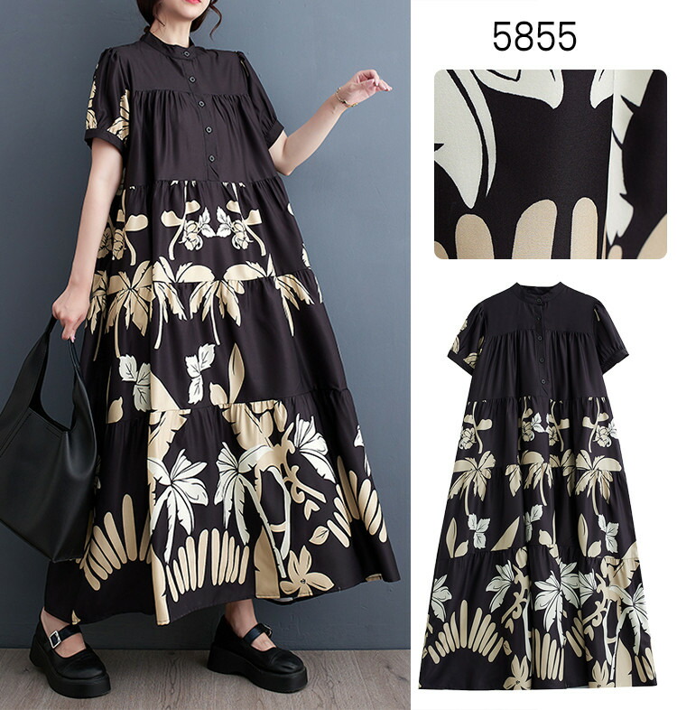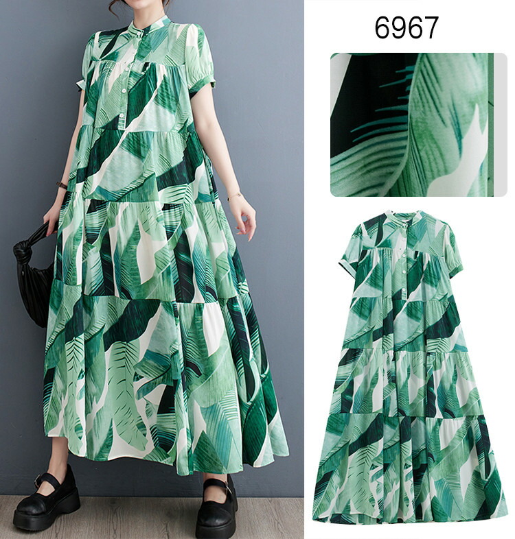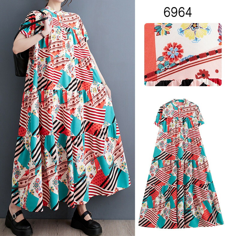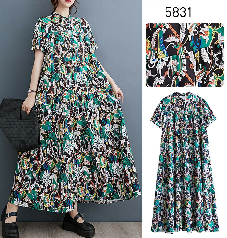 ワンピース フラワー柄 レディース ワンピ ロングワンピース ロングワンピ ロング 花柄 バンドカラー ハーフボタン 長袖 半袖 大きいサイズ ゆったり 上品