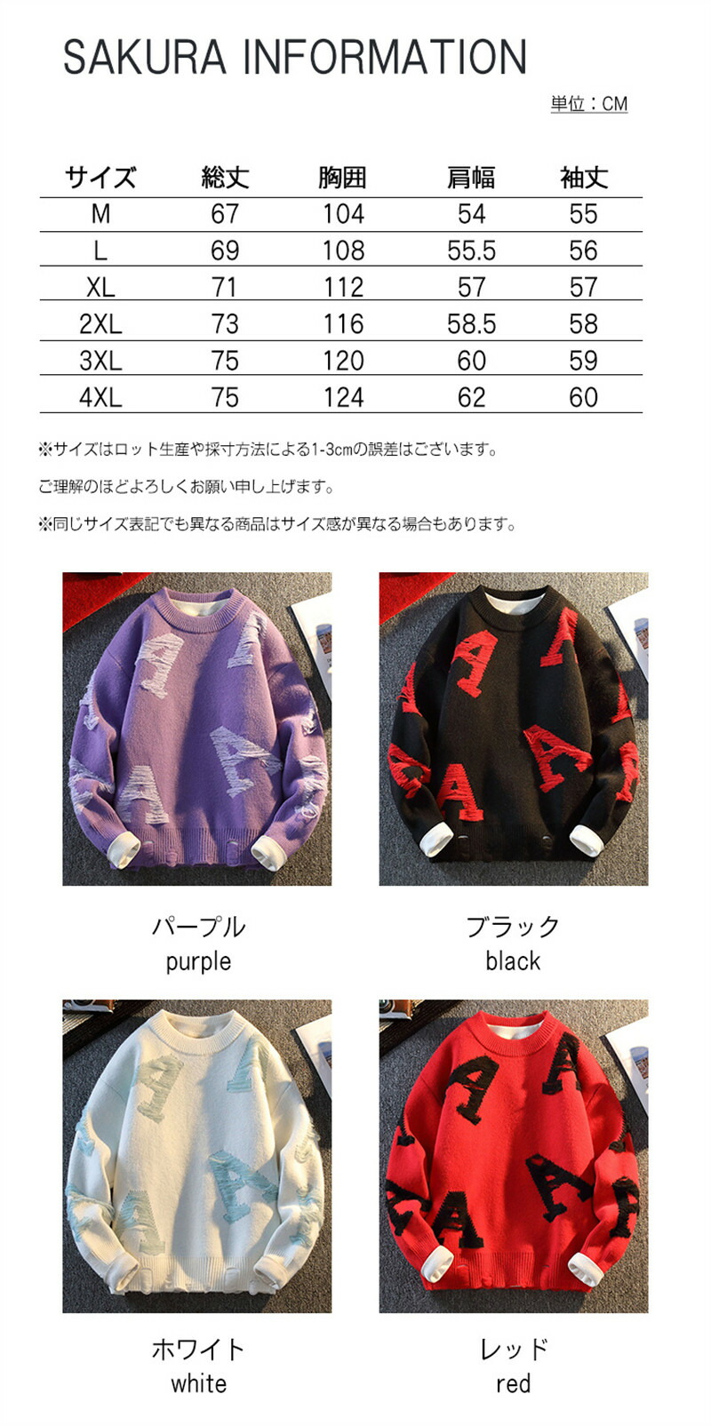 サイズ: M L XL 2XL 3XL 4XL