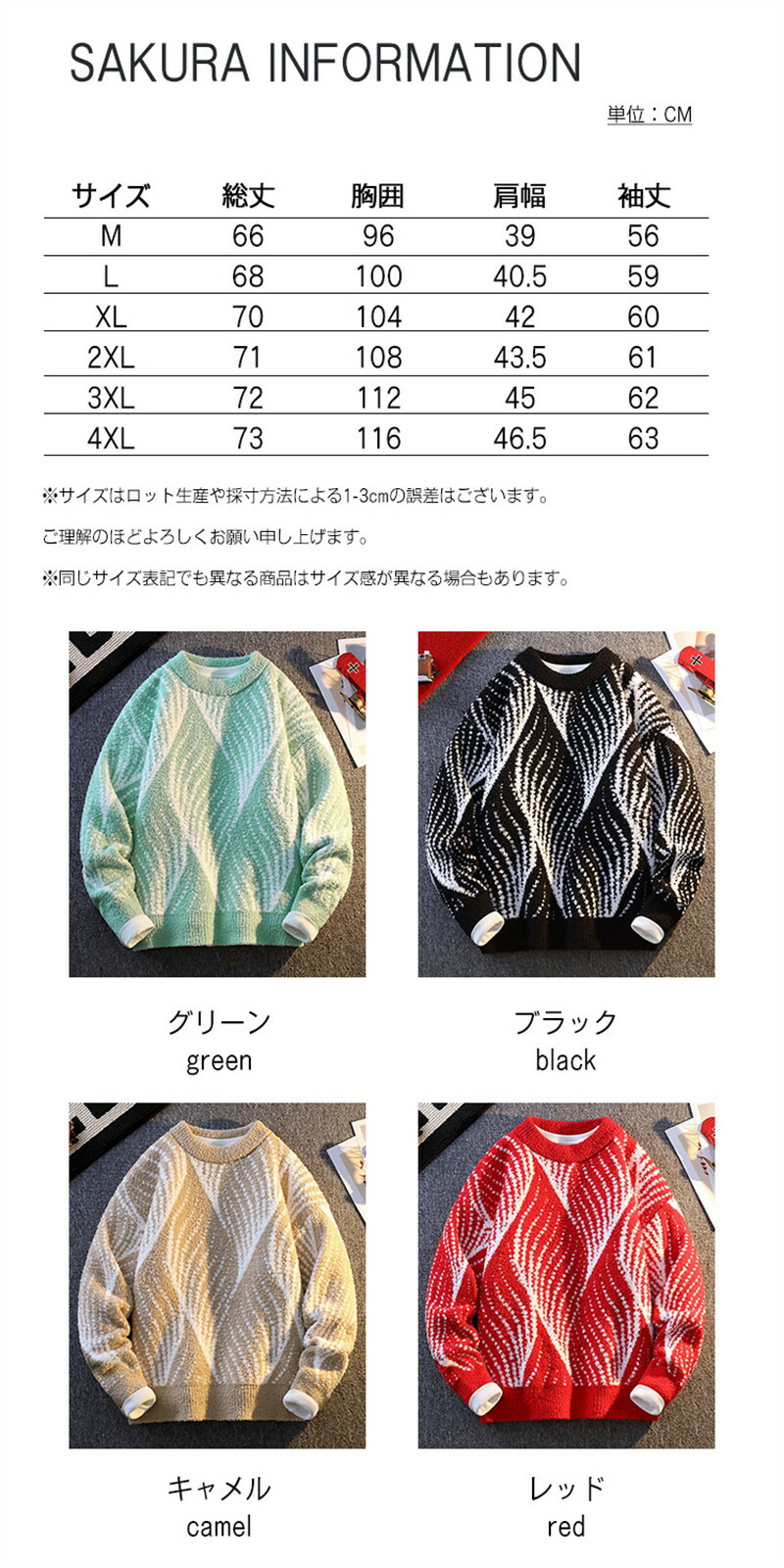 サイズ: M L XL 2XL 3XL 4XL