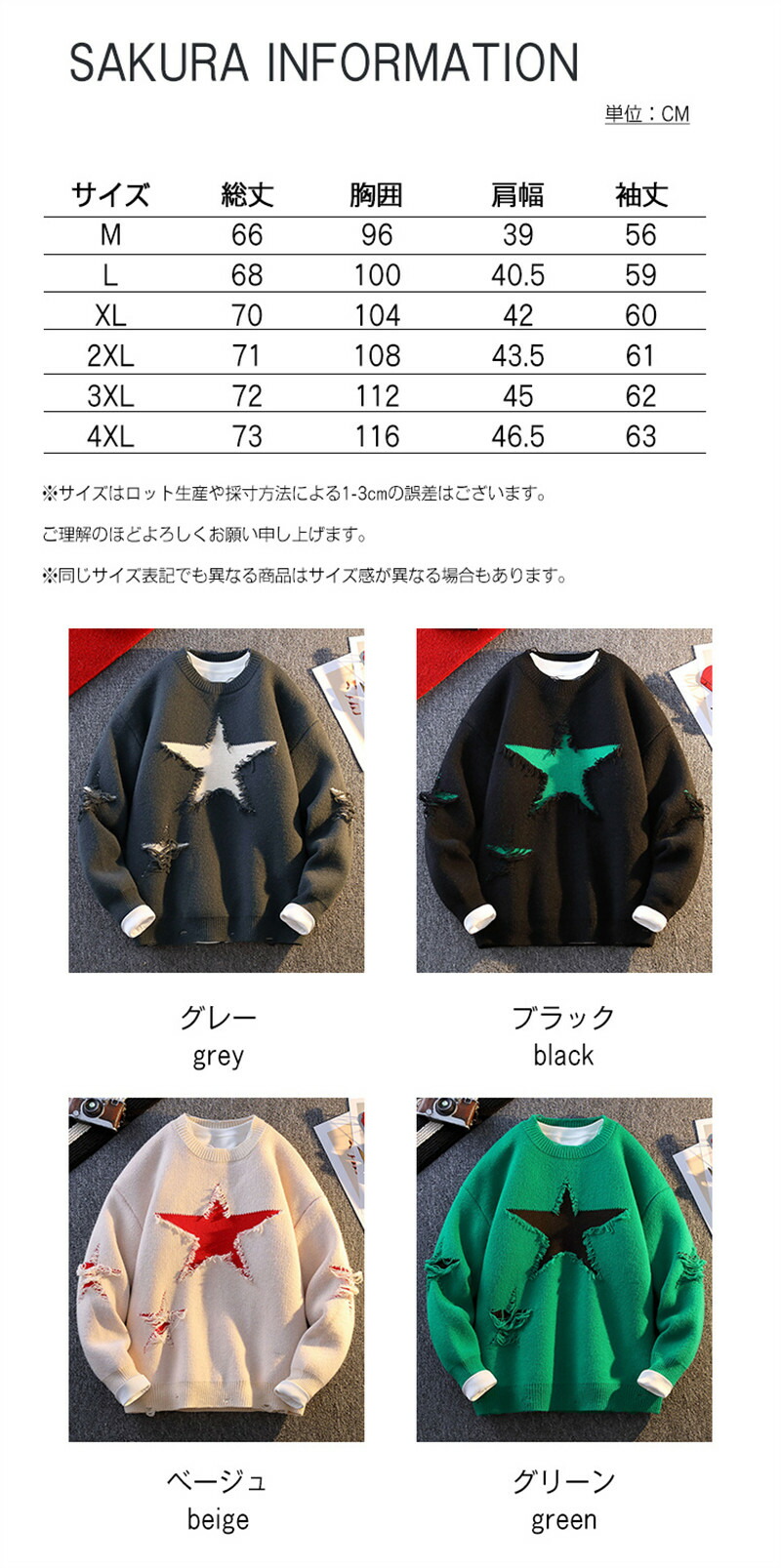 サイズ: M L XL 2XL 3XL 4XL