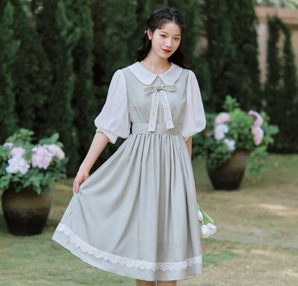 シアースリーブ ドッキングシャツ ボウタイシャツブラウス
