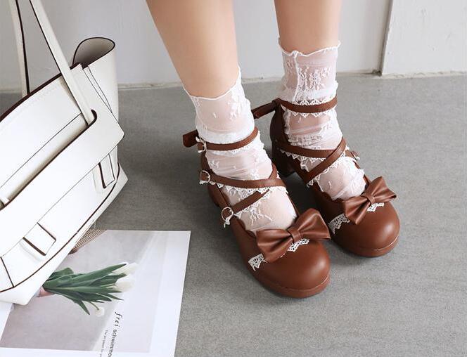 ロリータ靴 メイド靴 女の子 リボン付