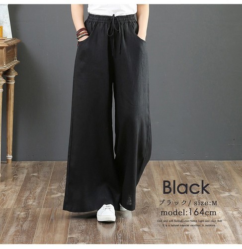 綿麻パンツ ロング スリット入り コッ
