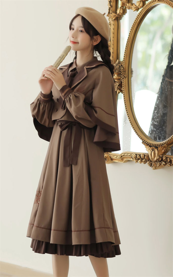 カラー: マント-ブラウン マント-ベージュ マント-グリーン ワンピース-ブラウン ワンピース-ベージュ ワンピース-グリーン 2点セット-ブラウン 2点セット-ベージュ 2点セット-グリーン