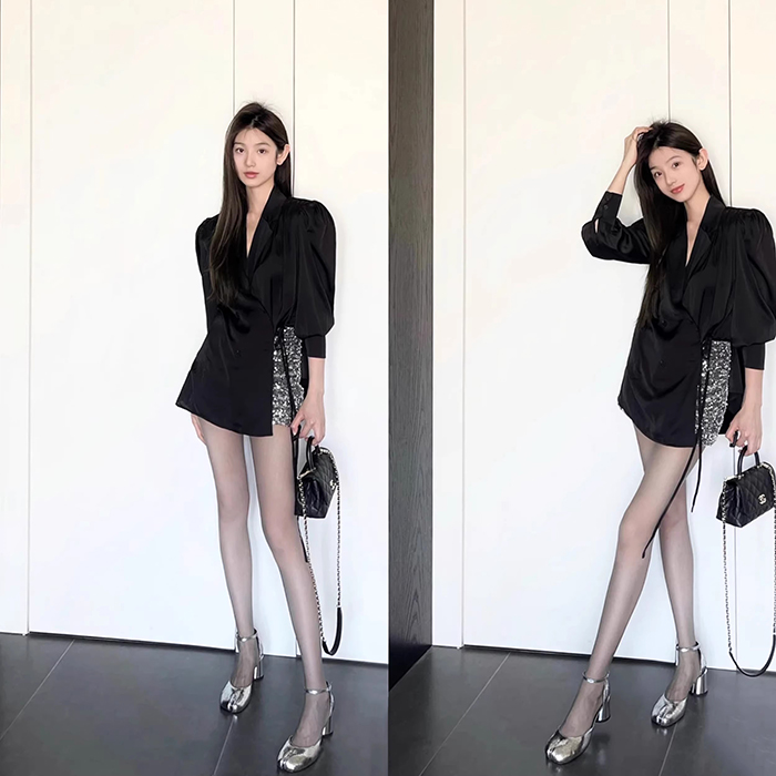 シアースリーブ ドッキングシャツ ボウタイシャツブラウス