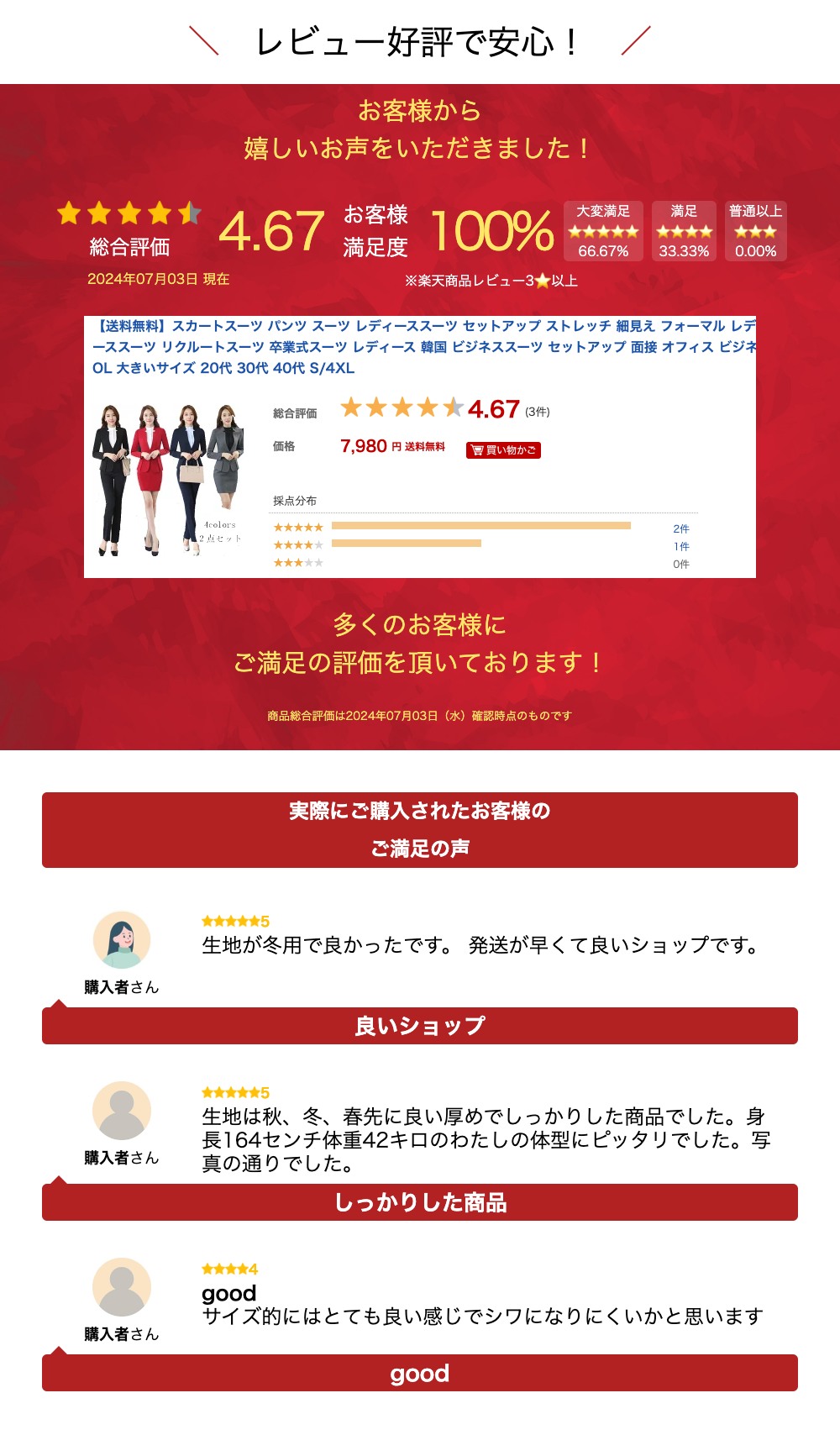 カラー: ブラック(スカートスーツ) ブラック(パンツスーツ) ネイビー(スカートスーツ) ネイビー(パンツスーツ) グレー(スカートスーツ) グレー(パンツスーツ) レッド(スカートスーツ)