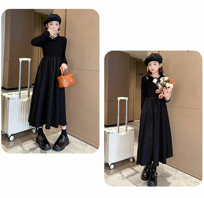 フレア ブラックワンピース 子供ワンピ