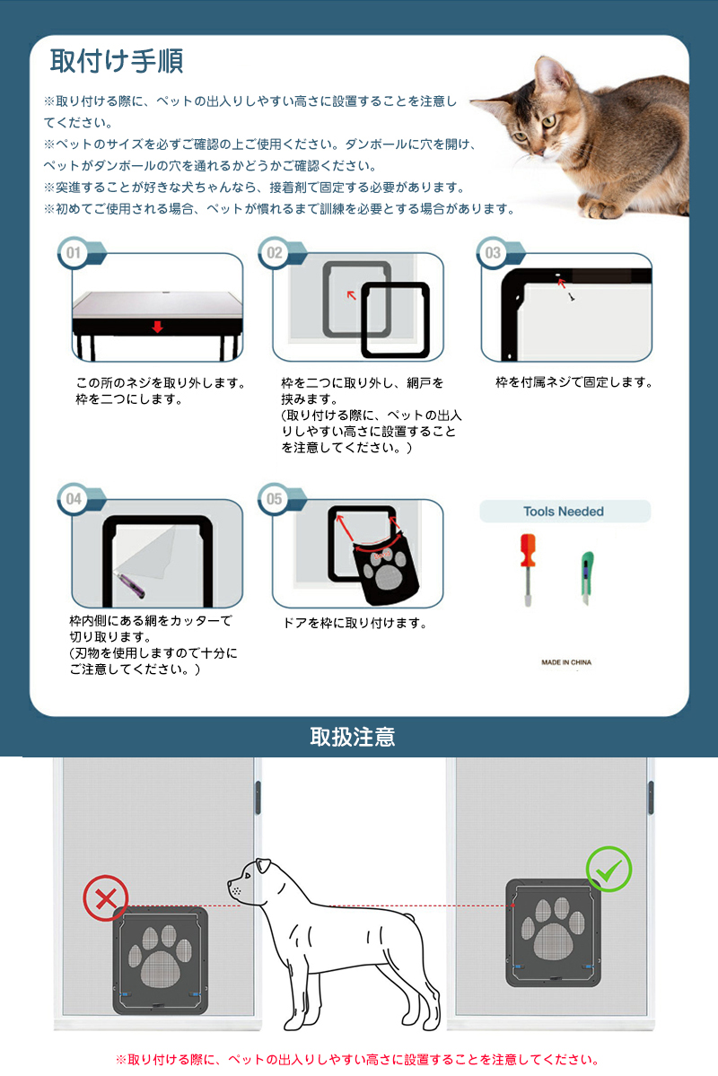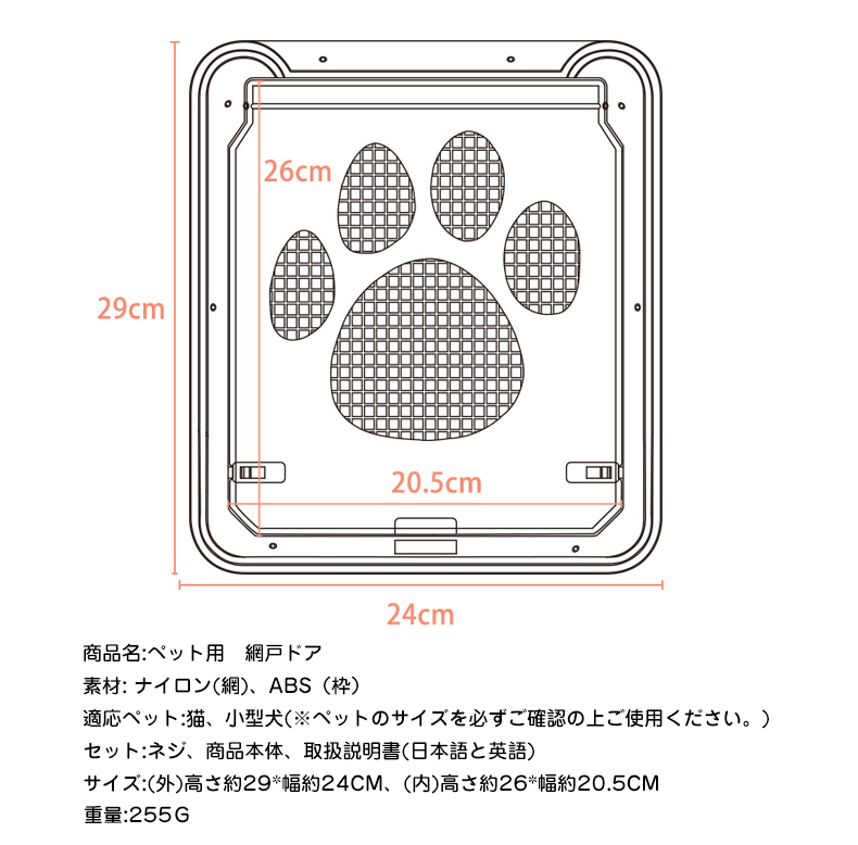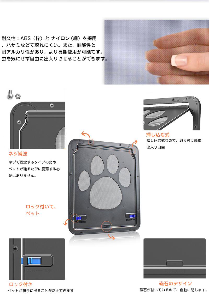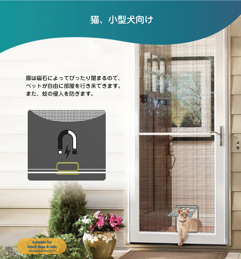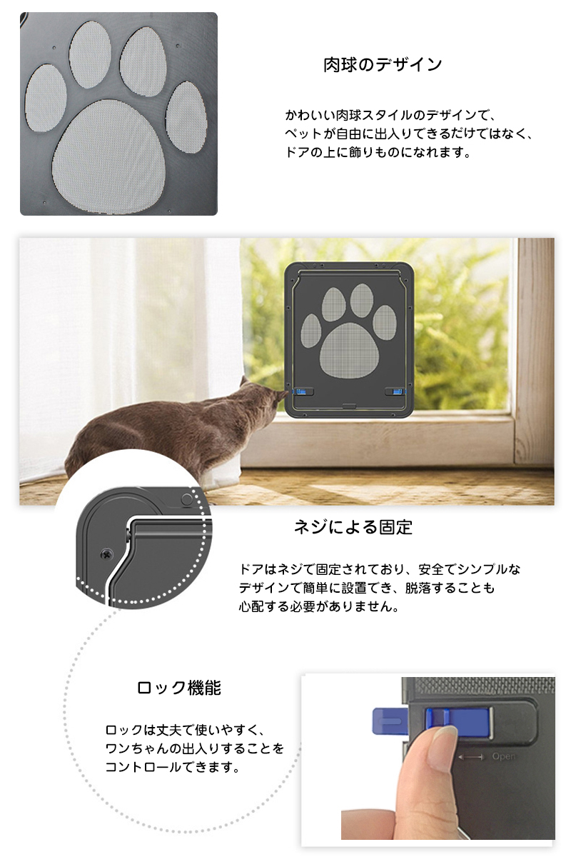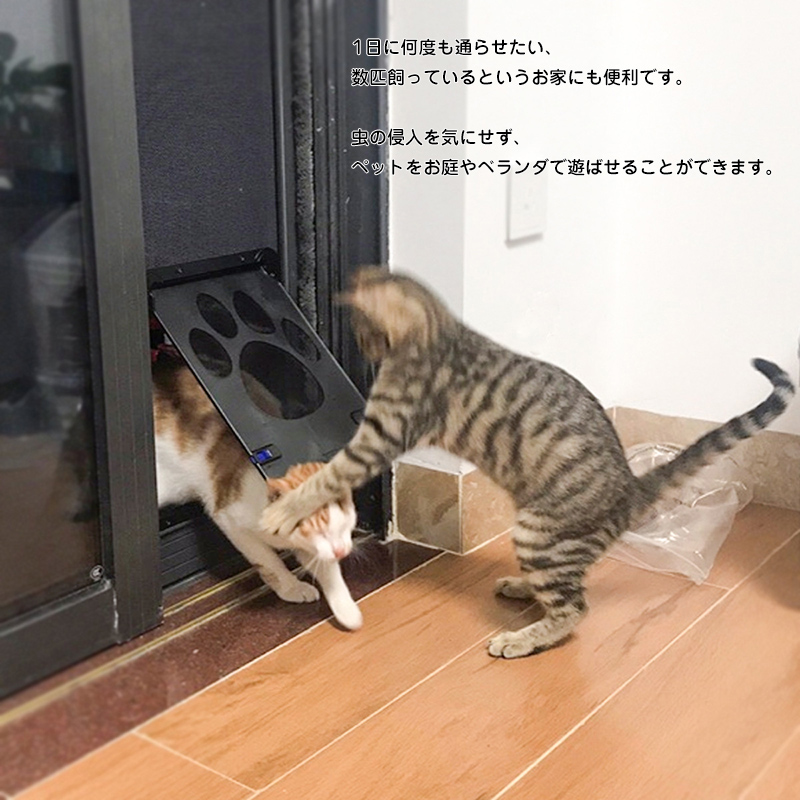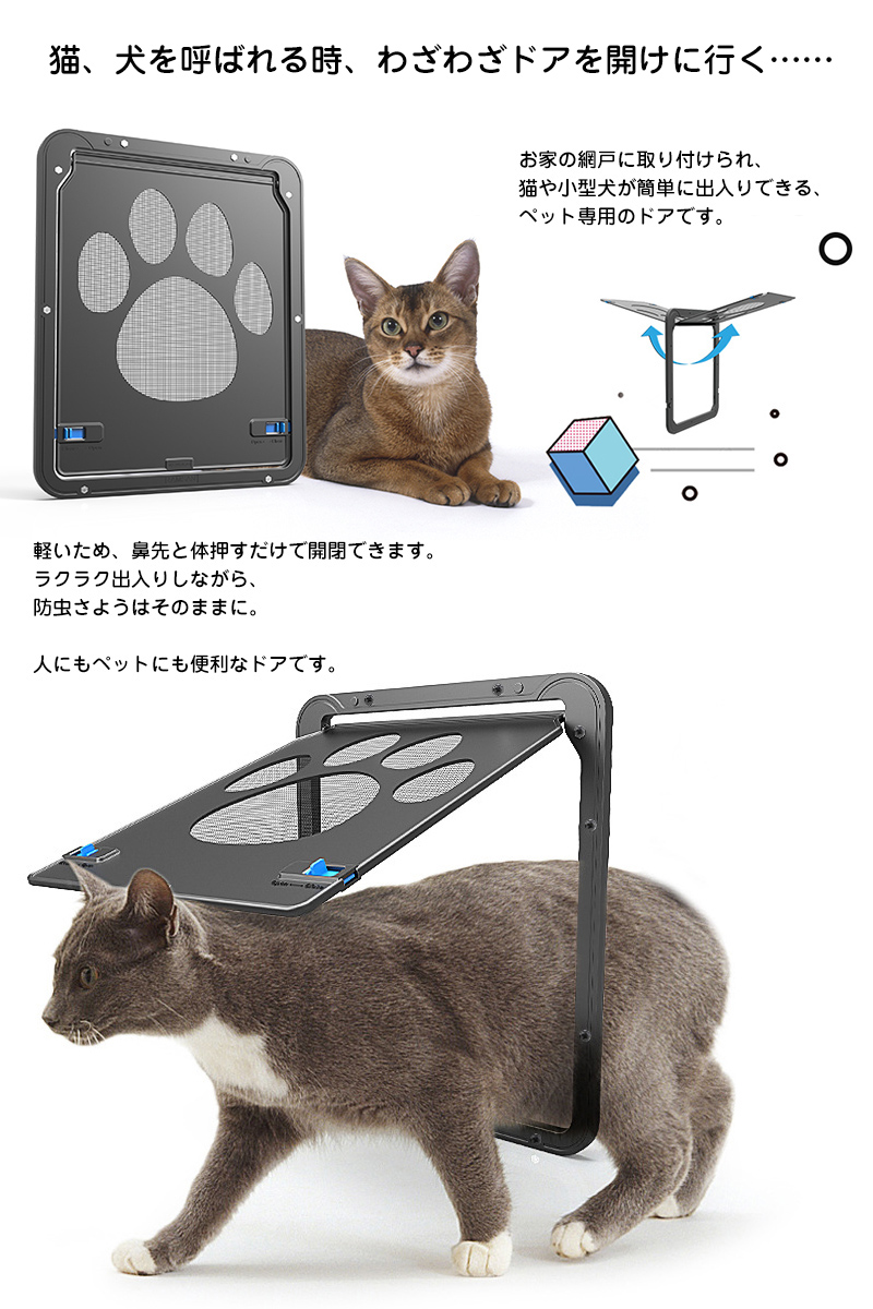 お家の網戸に取り付けられ、猫や小型犬が