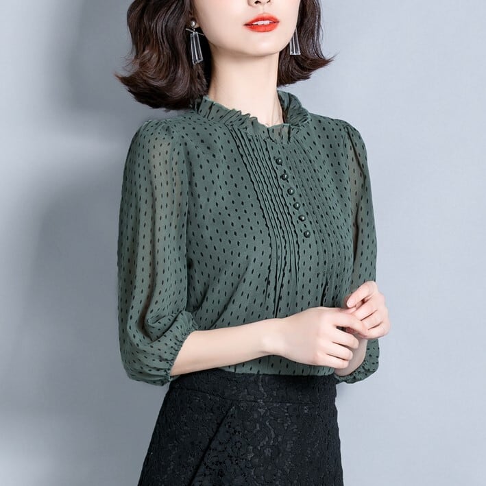 シフォンブラウス シアーブラウス ボリューム袖